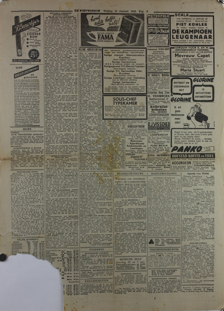 Stukje dagboek L.A. de Bruin op kladblokje.