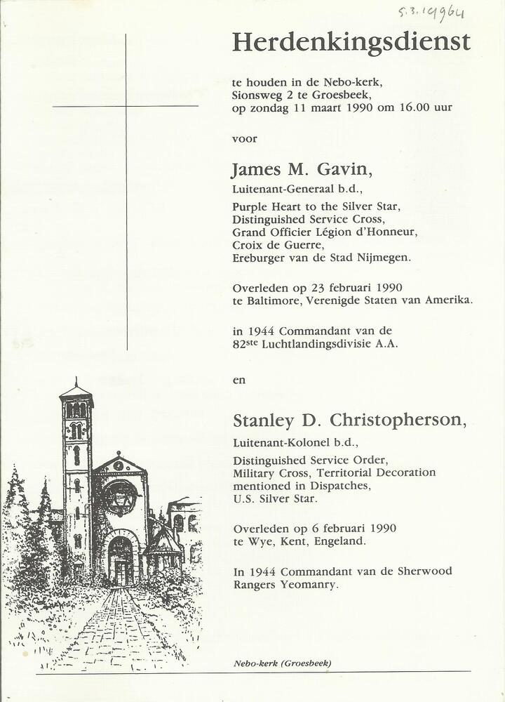 Kaart met kennisgeving herdenkingsdienst voor James ...