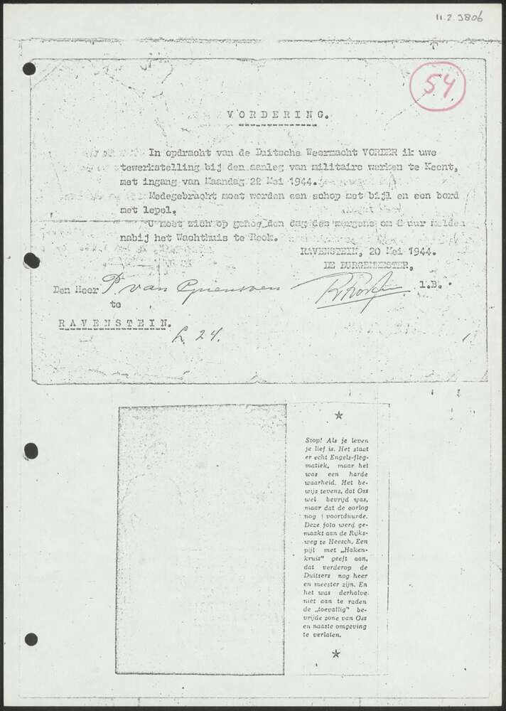 Oproep Burgemeester Ravenstein 20 mei 1944.