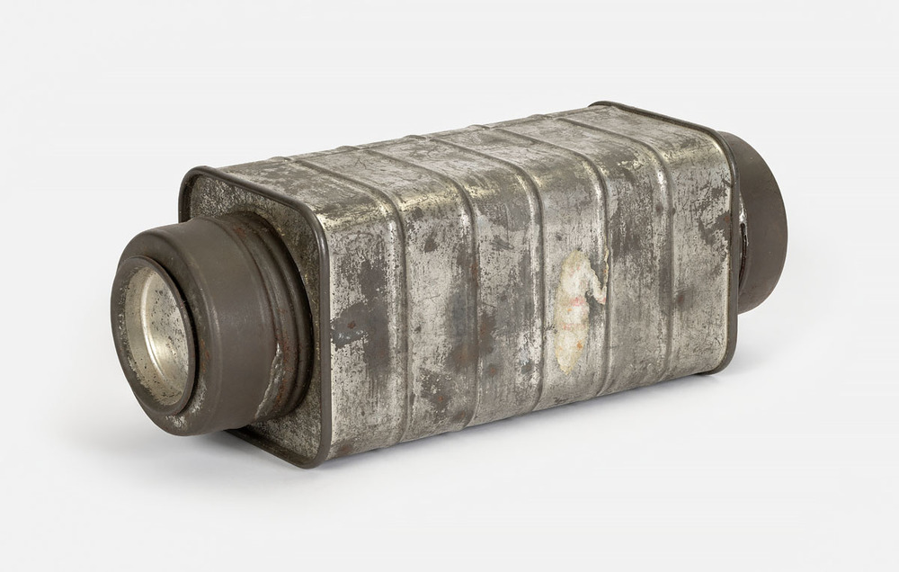 Blikje onderverdeeld in twee gedeelten en aan beide ...