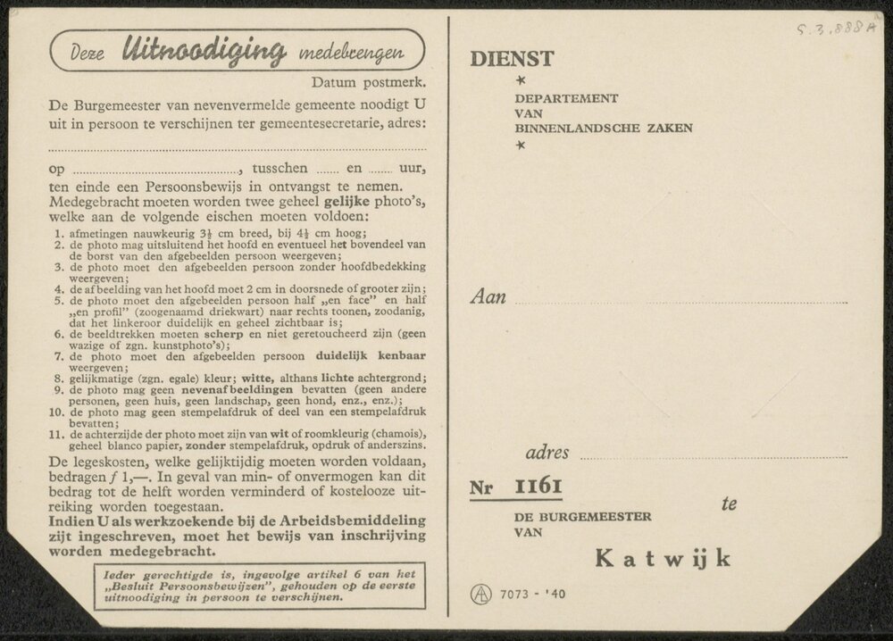 Kaart blanco; Uitnodiging ontvangst persoonsbewijs