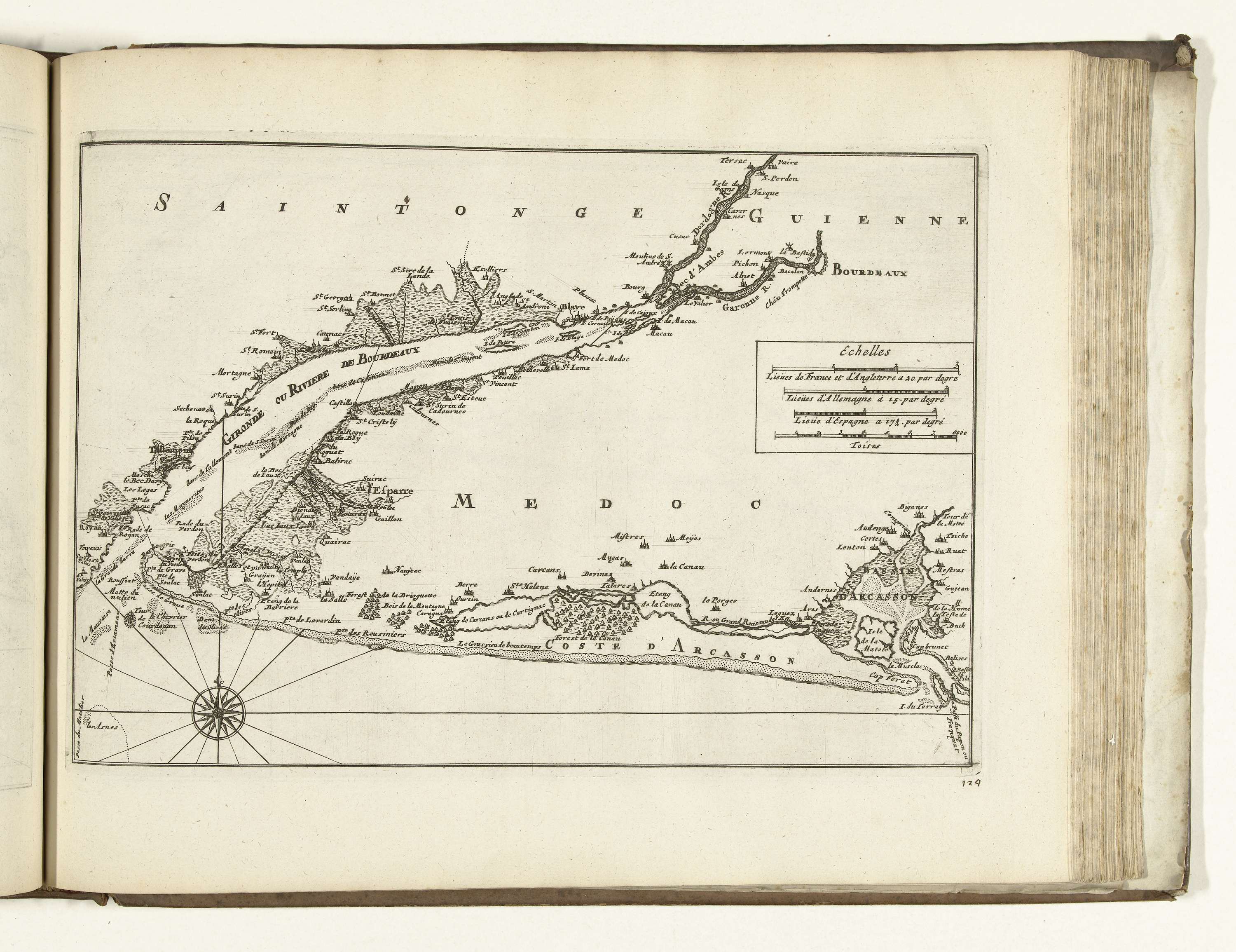 Kaart van de Franse westkust met de monding van de G...