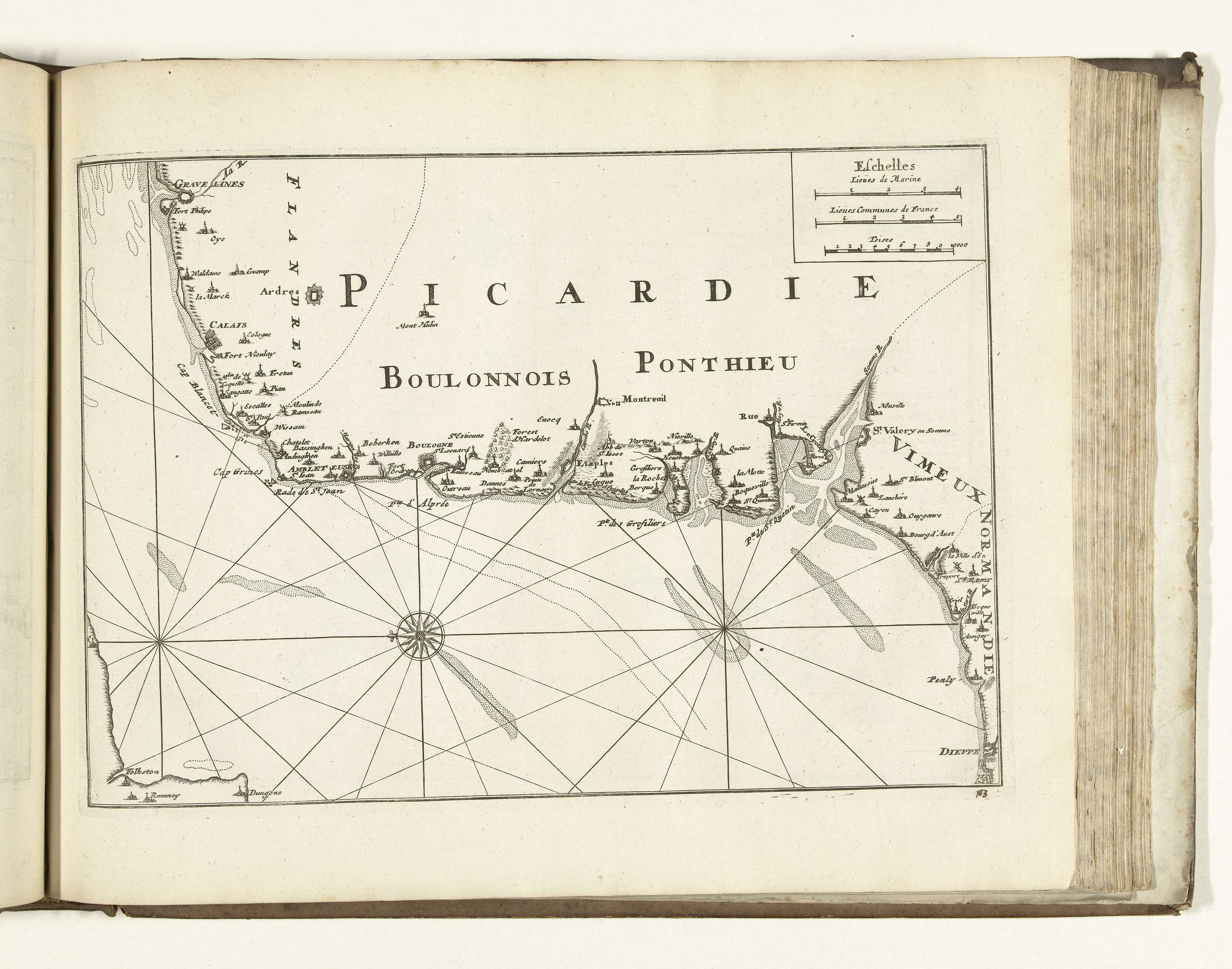Kaart van de Franse kust tussen Gravelines en Dieppe...