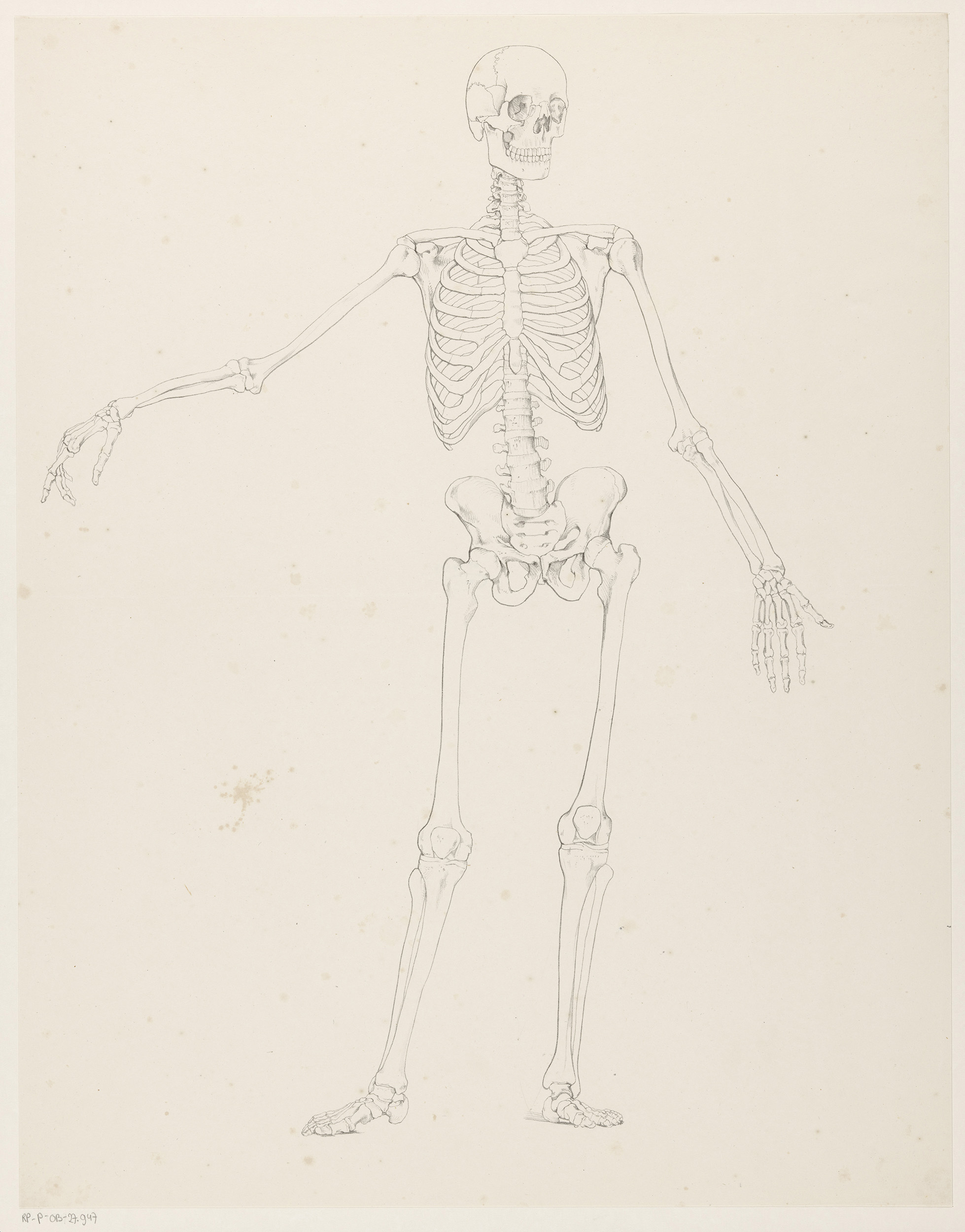 Menselijk skelet op de rug gezien