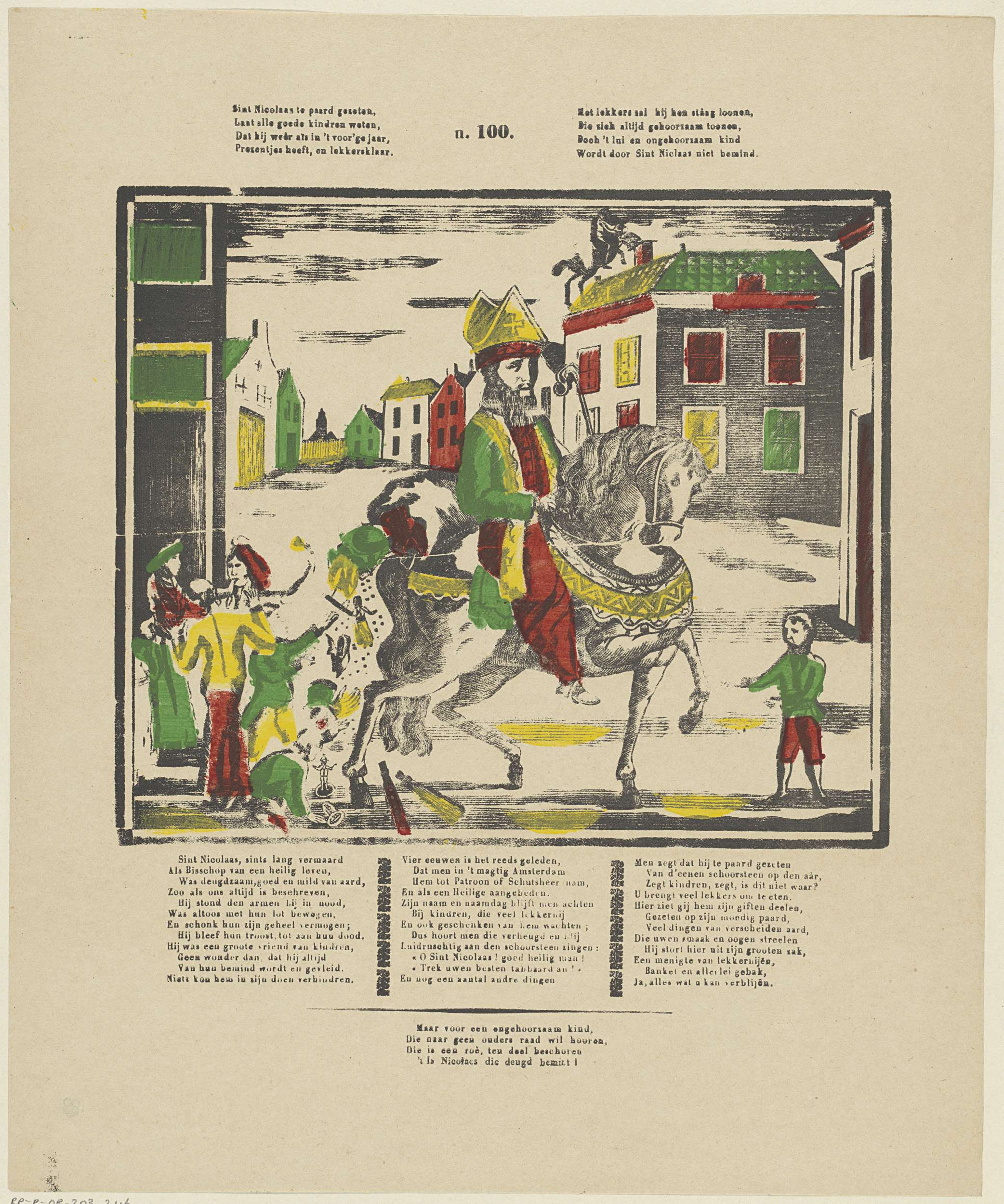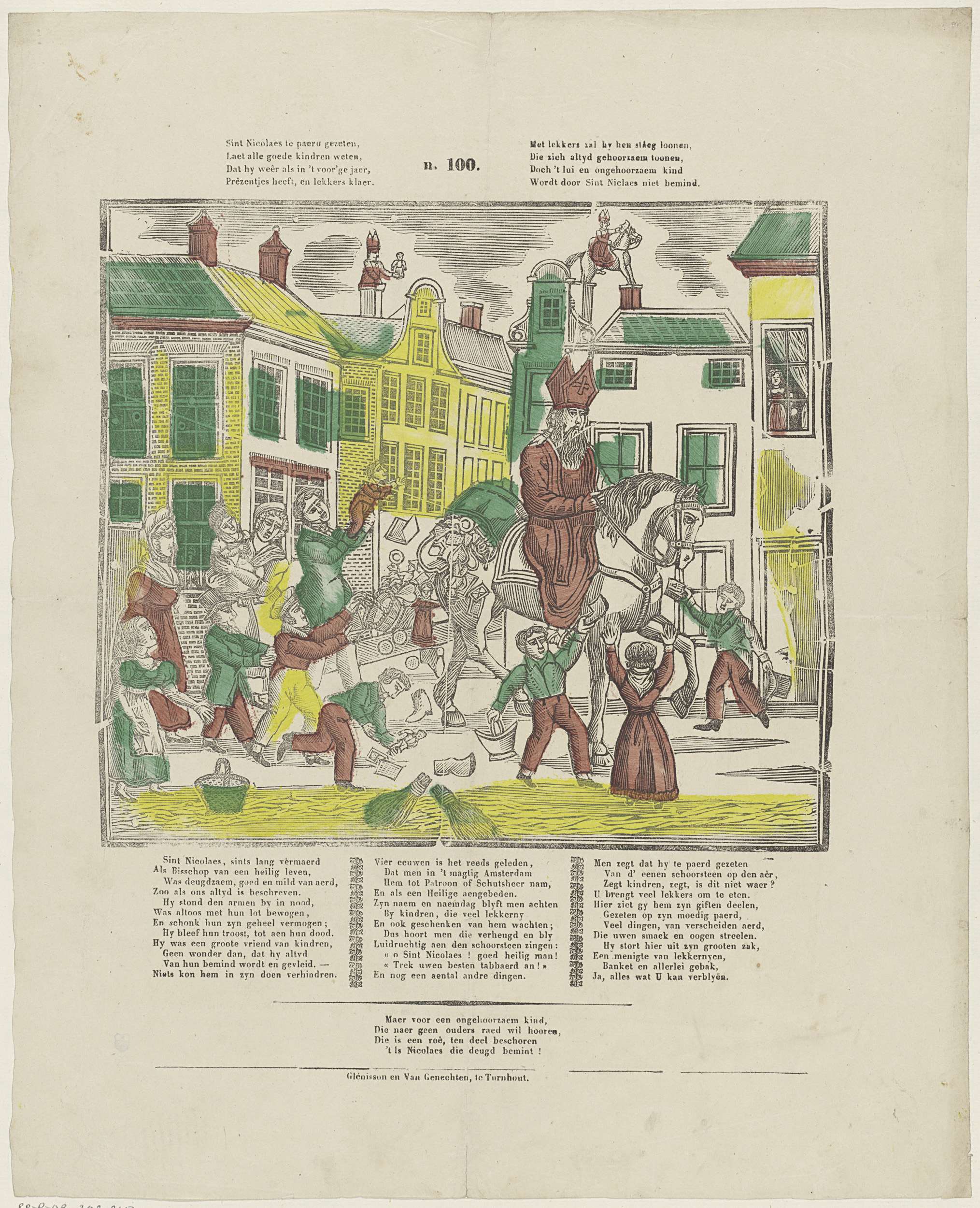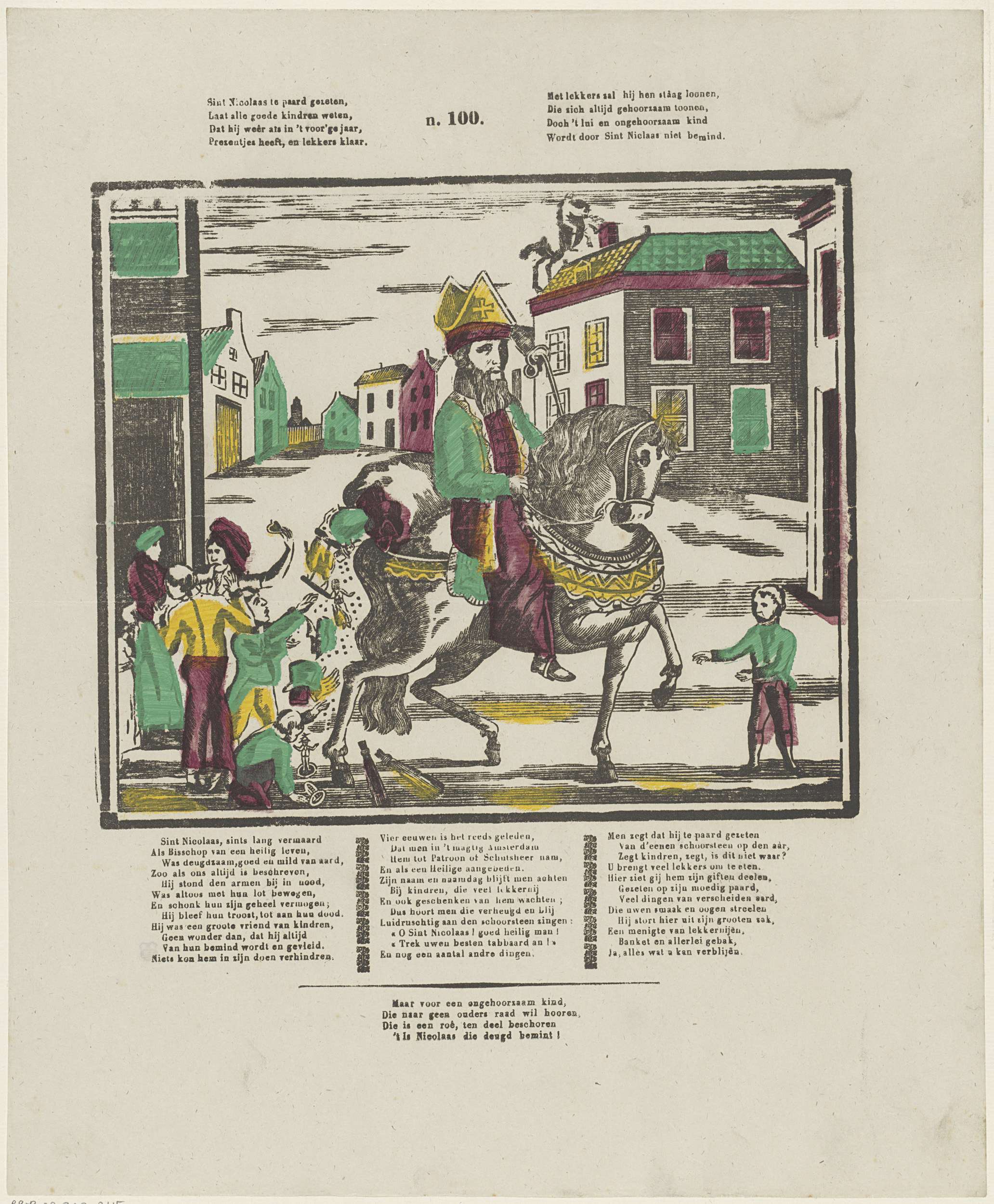 Sint Nicolaas te paard gezeten, / Laat alle goede ki...