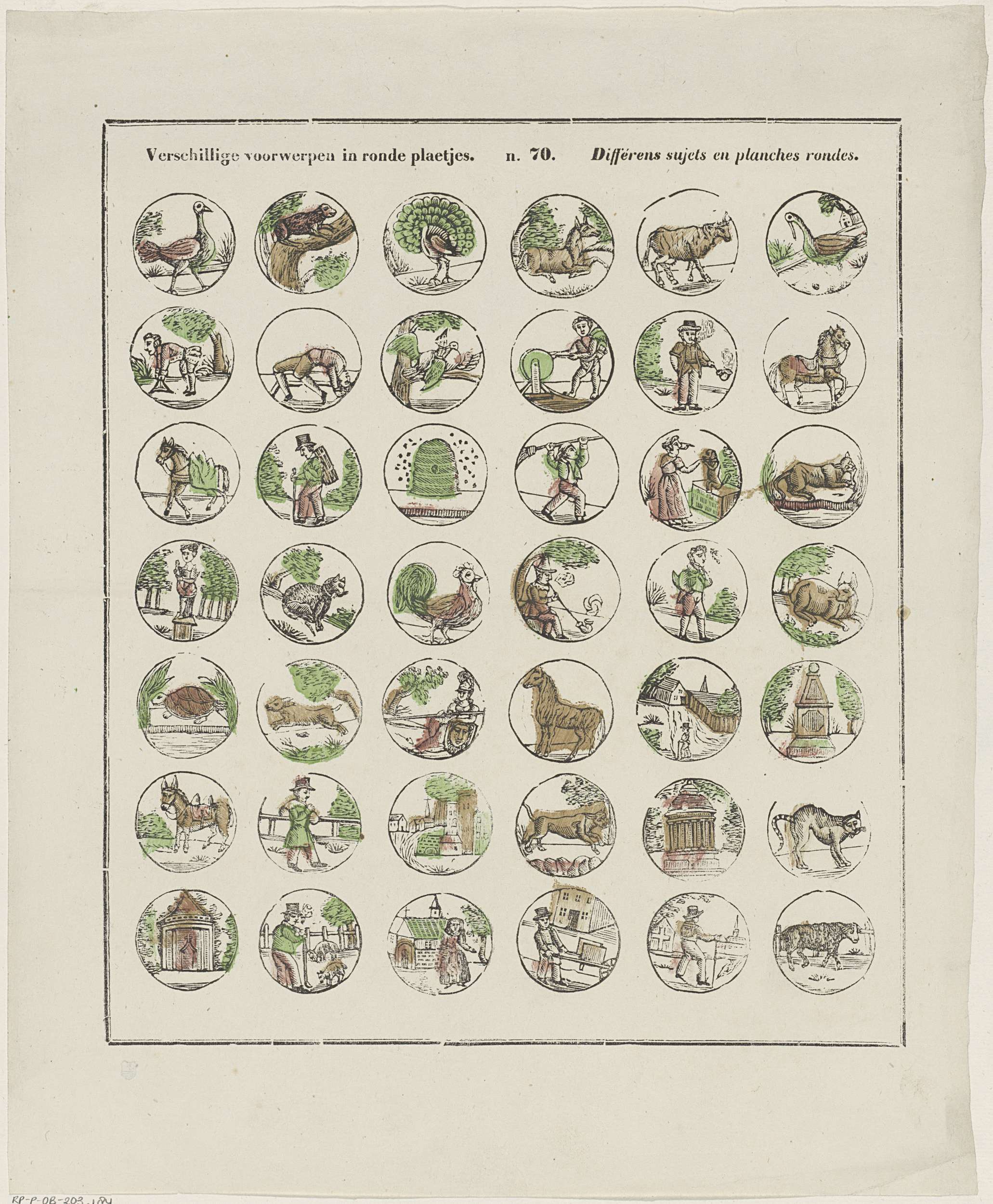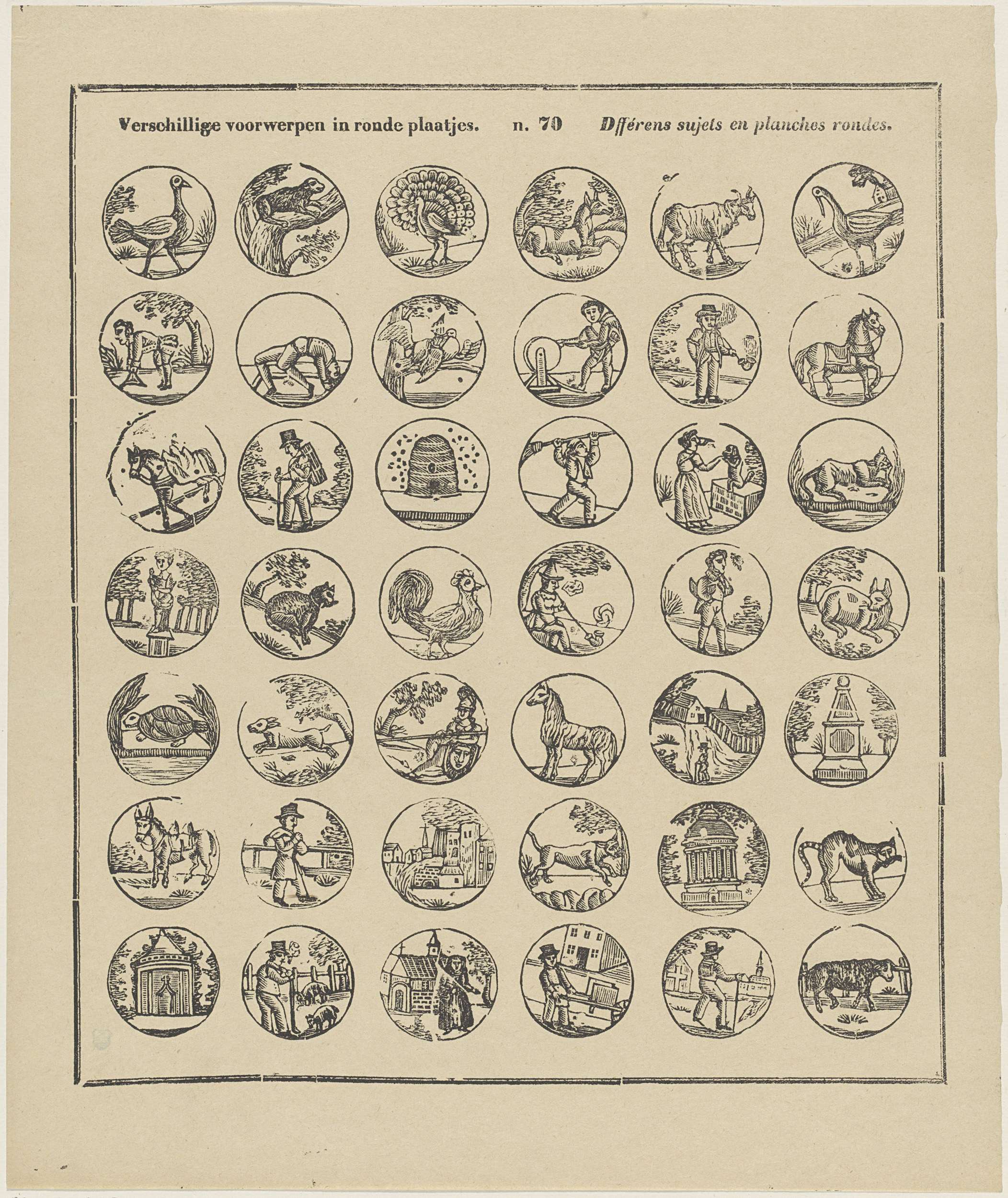 Verschillige voorwerpen in ronde plaatjes / Différen...