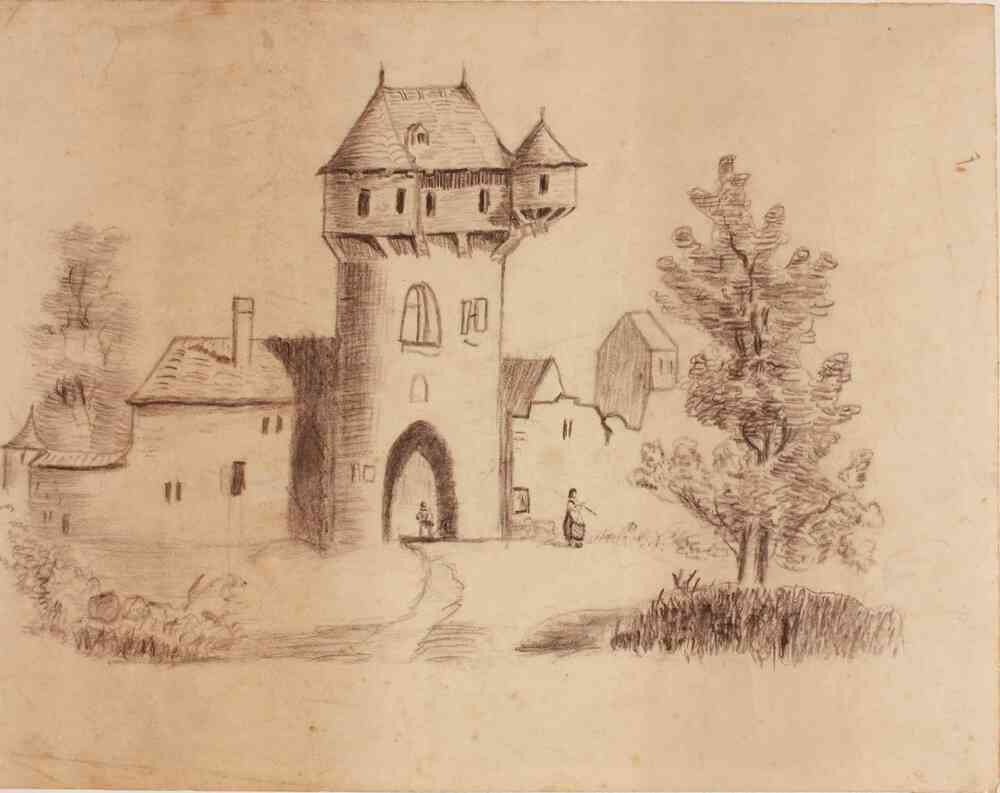 Gravure "Voormalig seminarie te 's-Heerenberg" op pa...