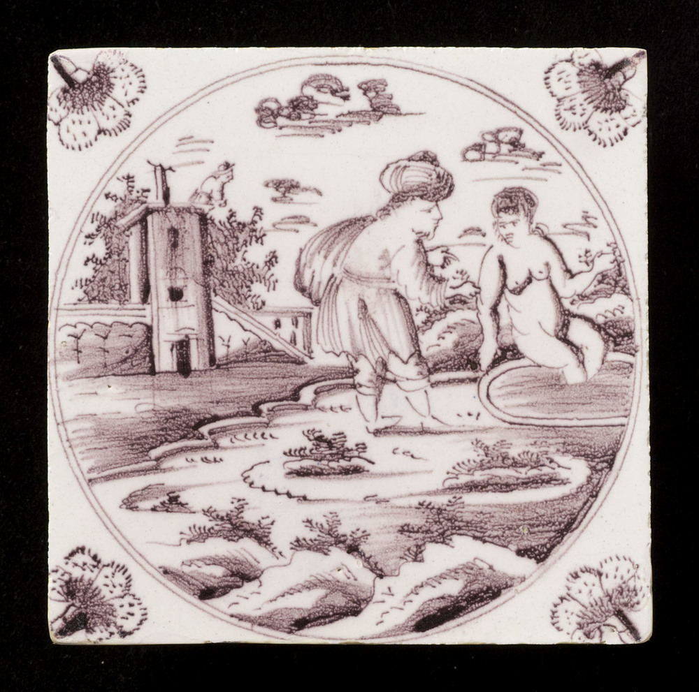 tegel van aardewerk met tinglazuur, voorstellende: z...