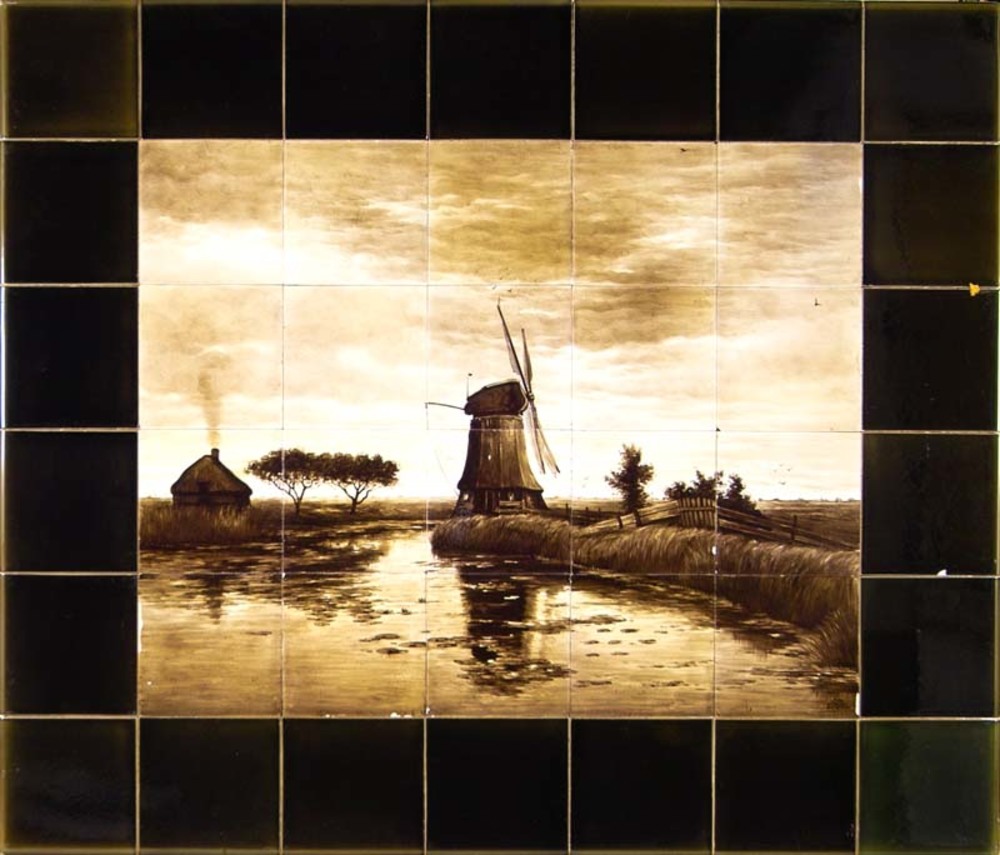 Tegel van keramiek met tinglazuur, voorstellende: or...