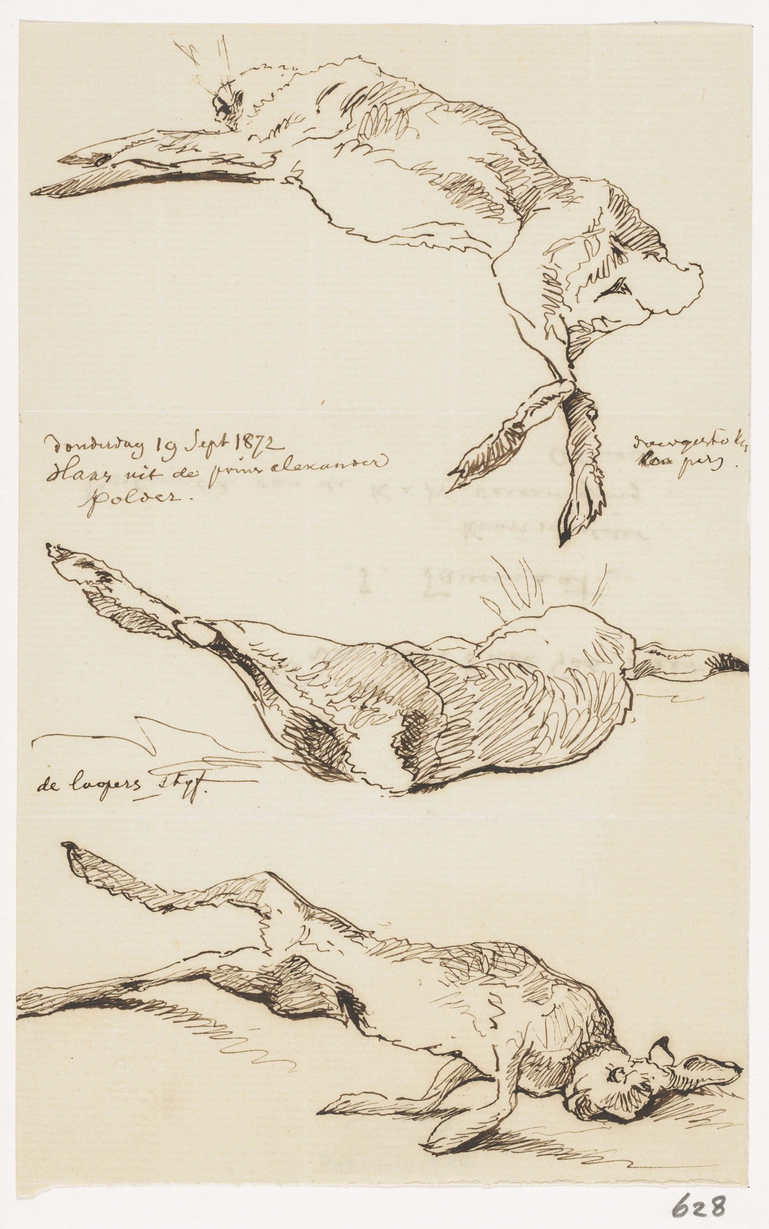 Drie studies van een geschoten haas