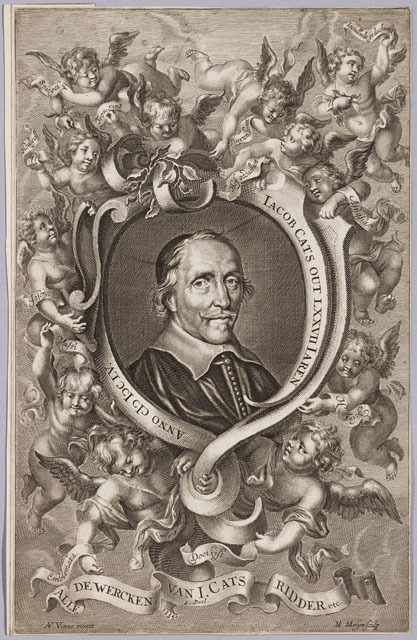 Portret van Jacob Cats afgebeeld in een ovaal geflan...