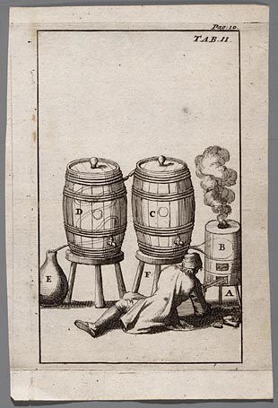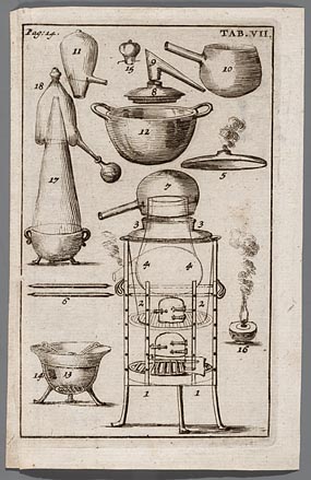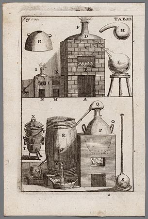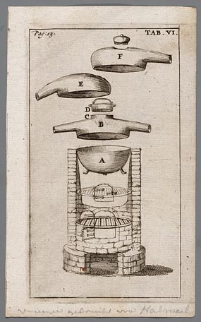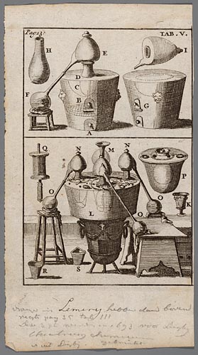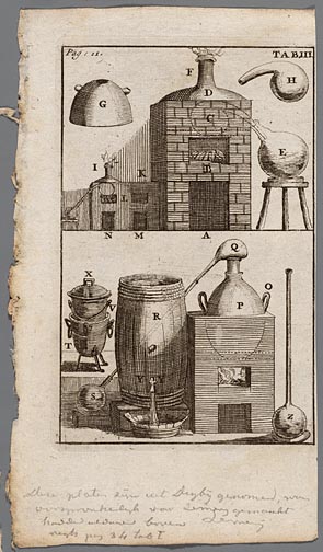 Afbeelding van een distilleertoestel en van de versc...