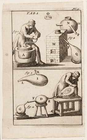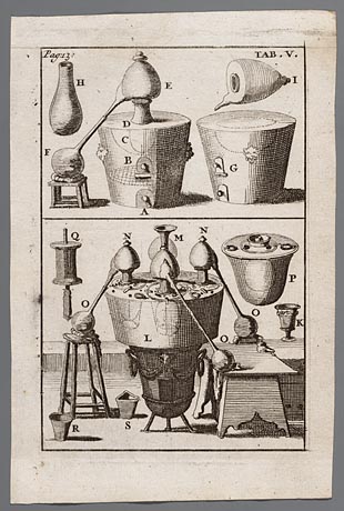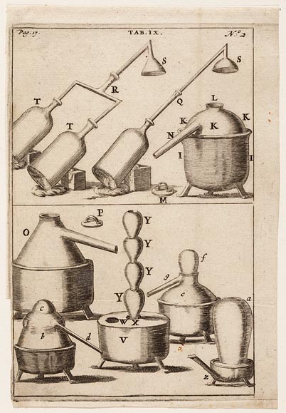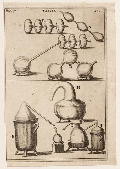 Verschillende afbeeldingen van retorten en destillee...