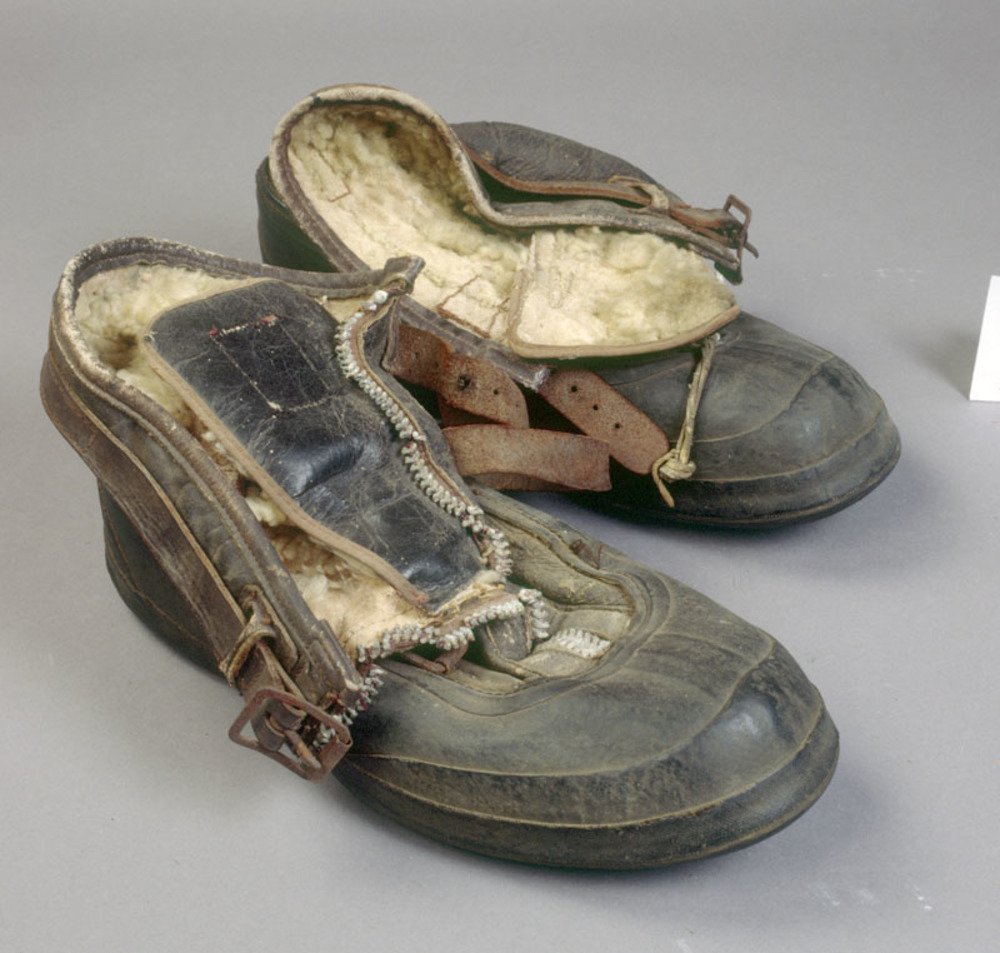 één paar lederen vliegeniersschoenen met lamsvacht, ...