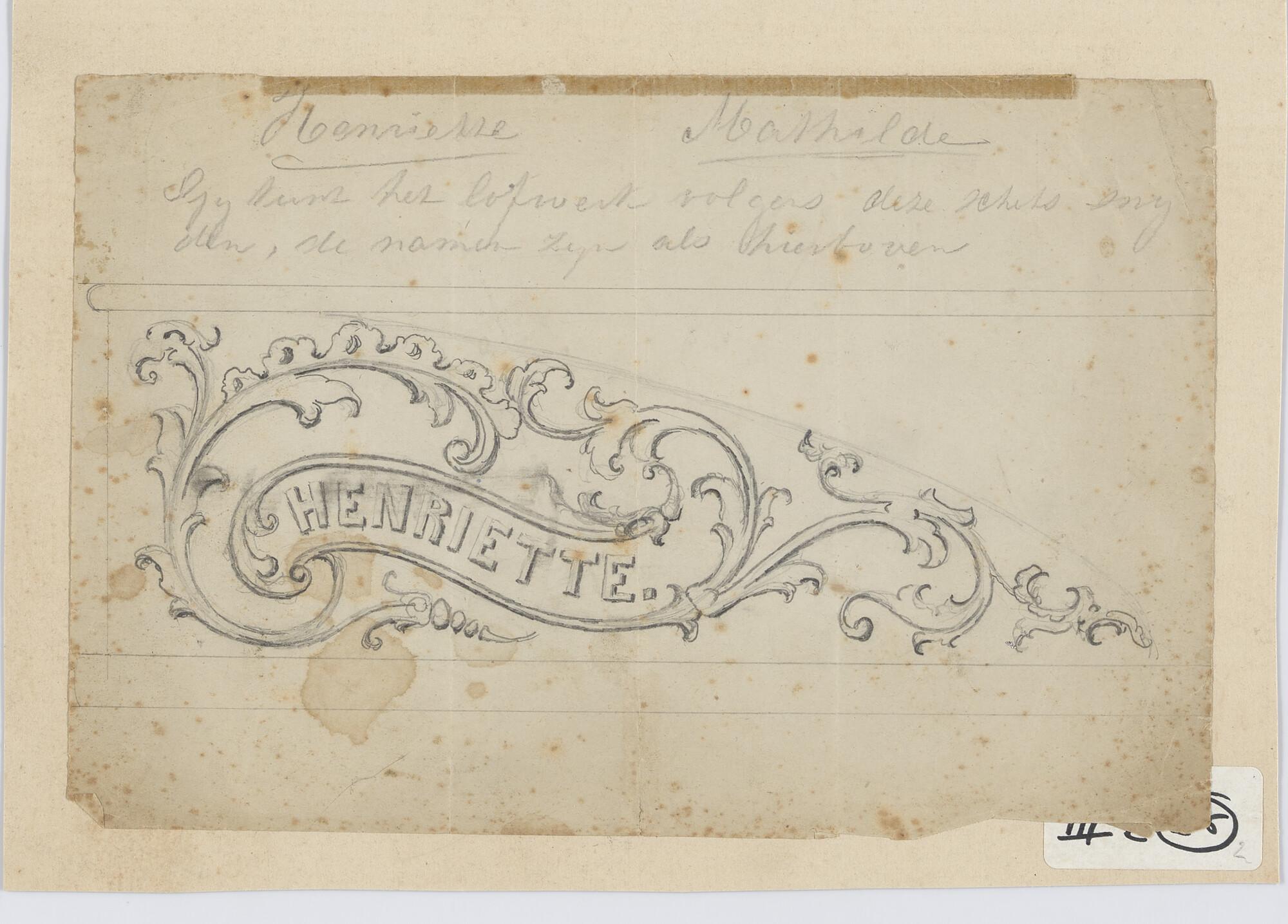 Ontwerp spiegelnaambord 'Henriëtte' en 'Mathilde'