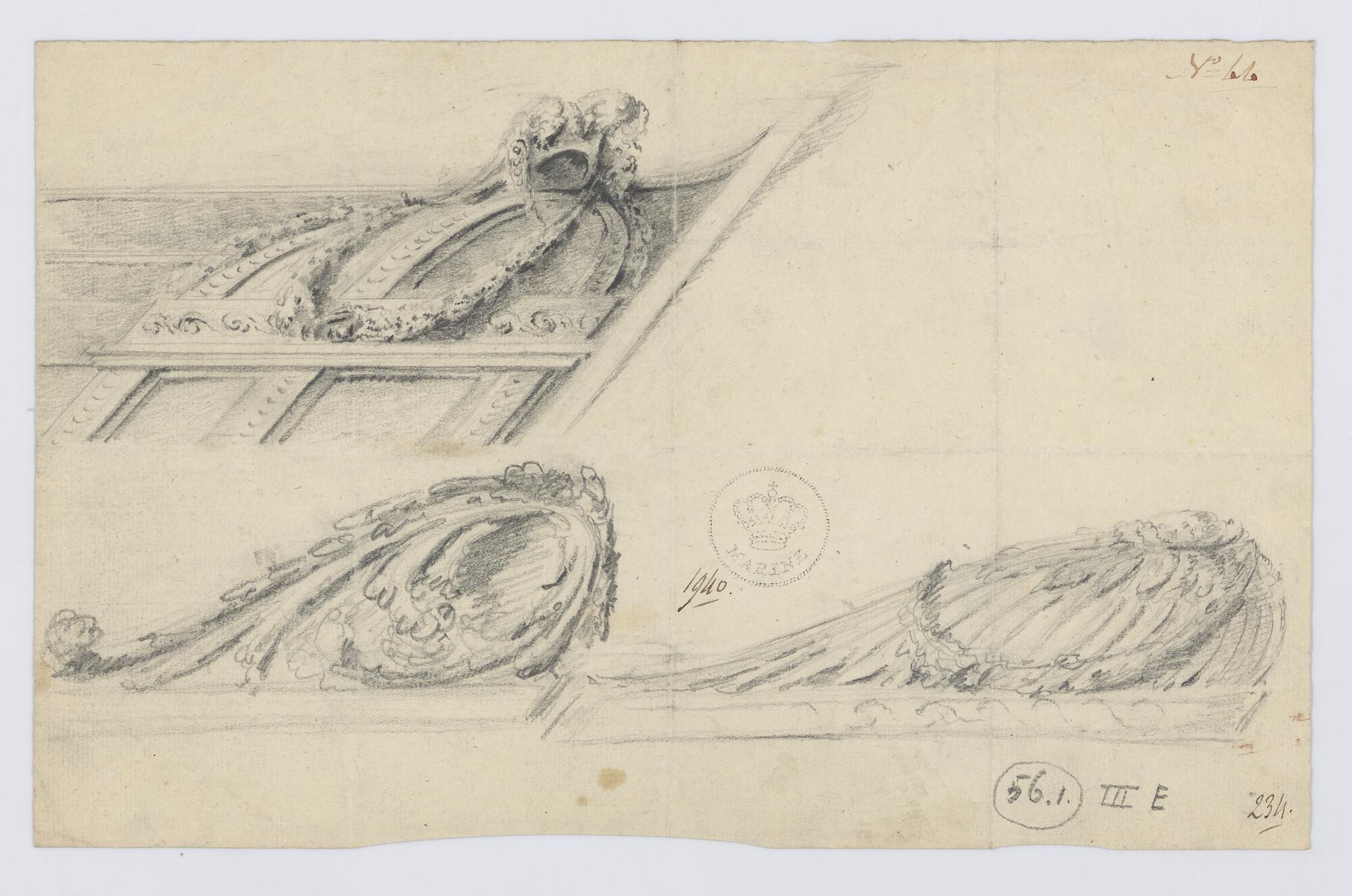 Drie ontwerpen van lofwerk voor de spiegel en zijgal...