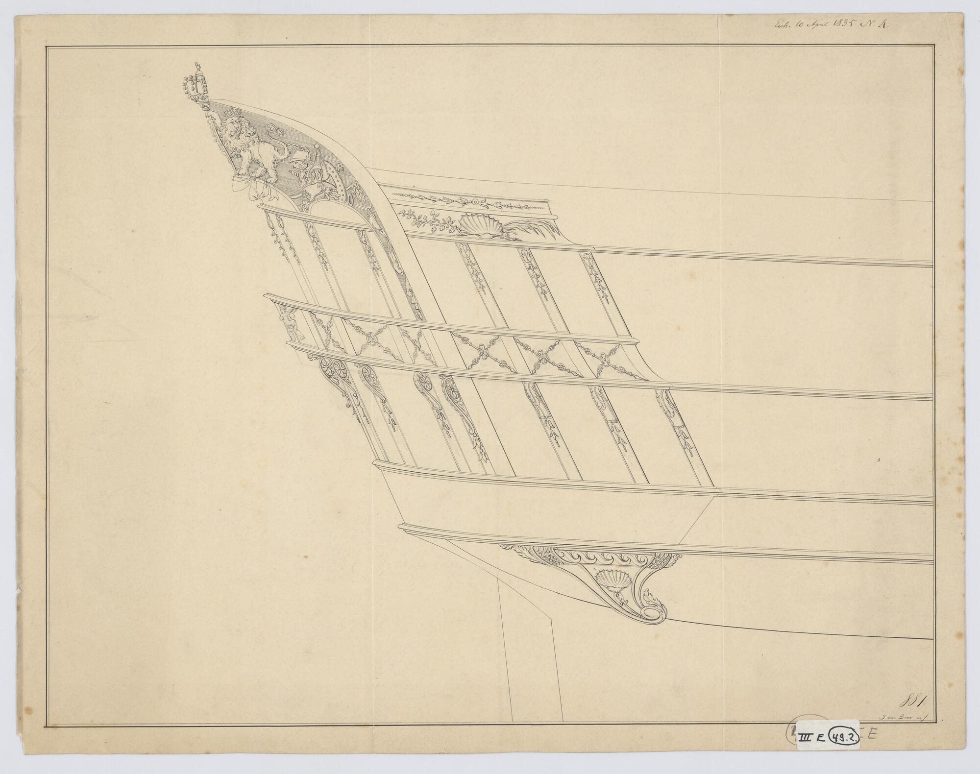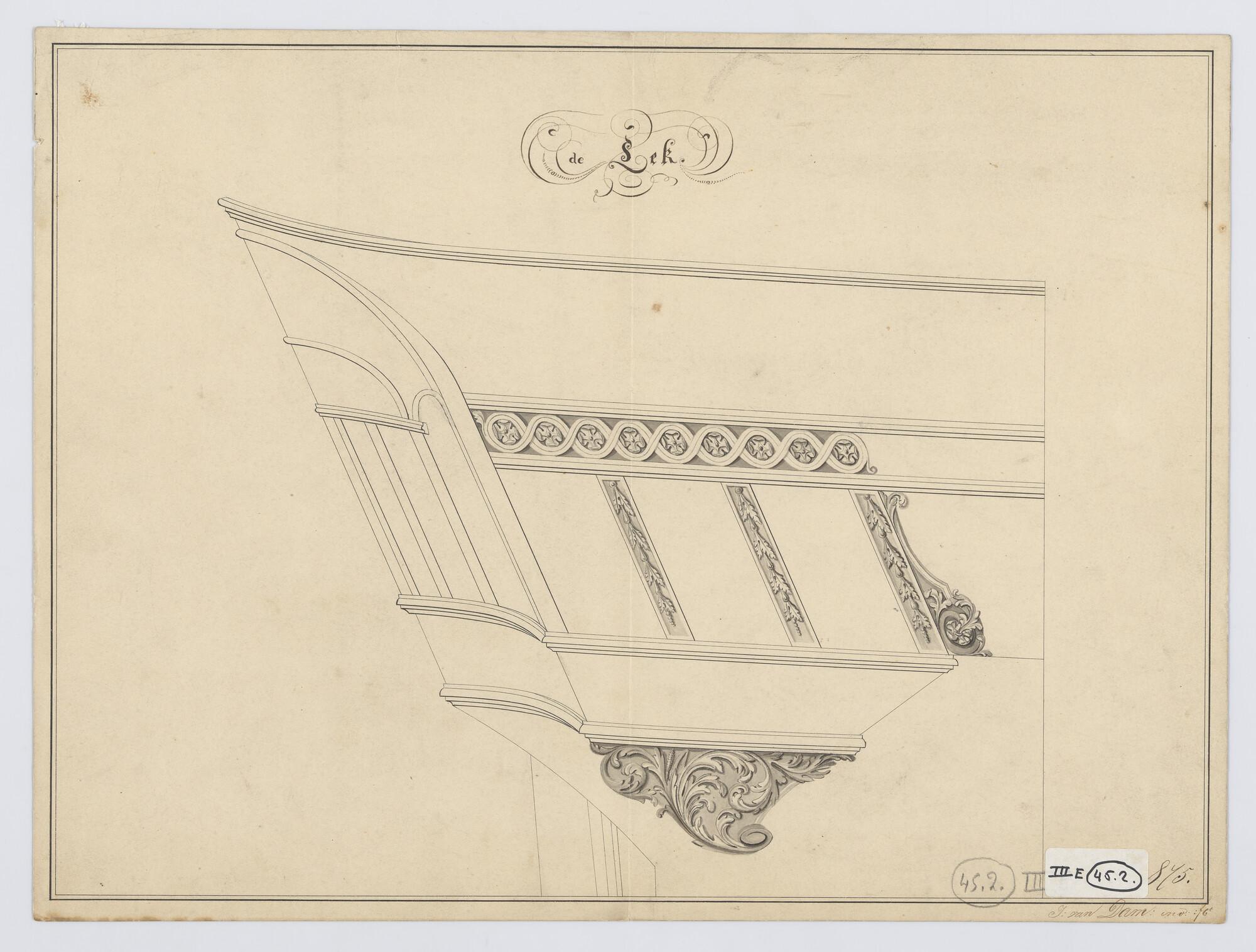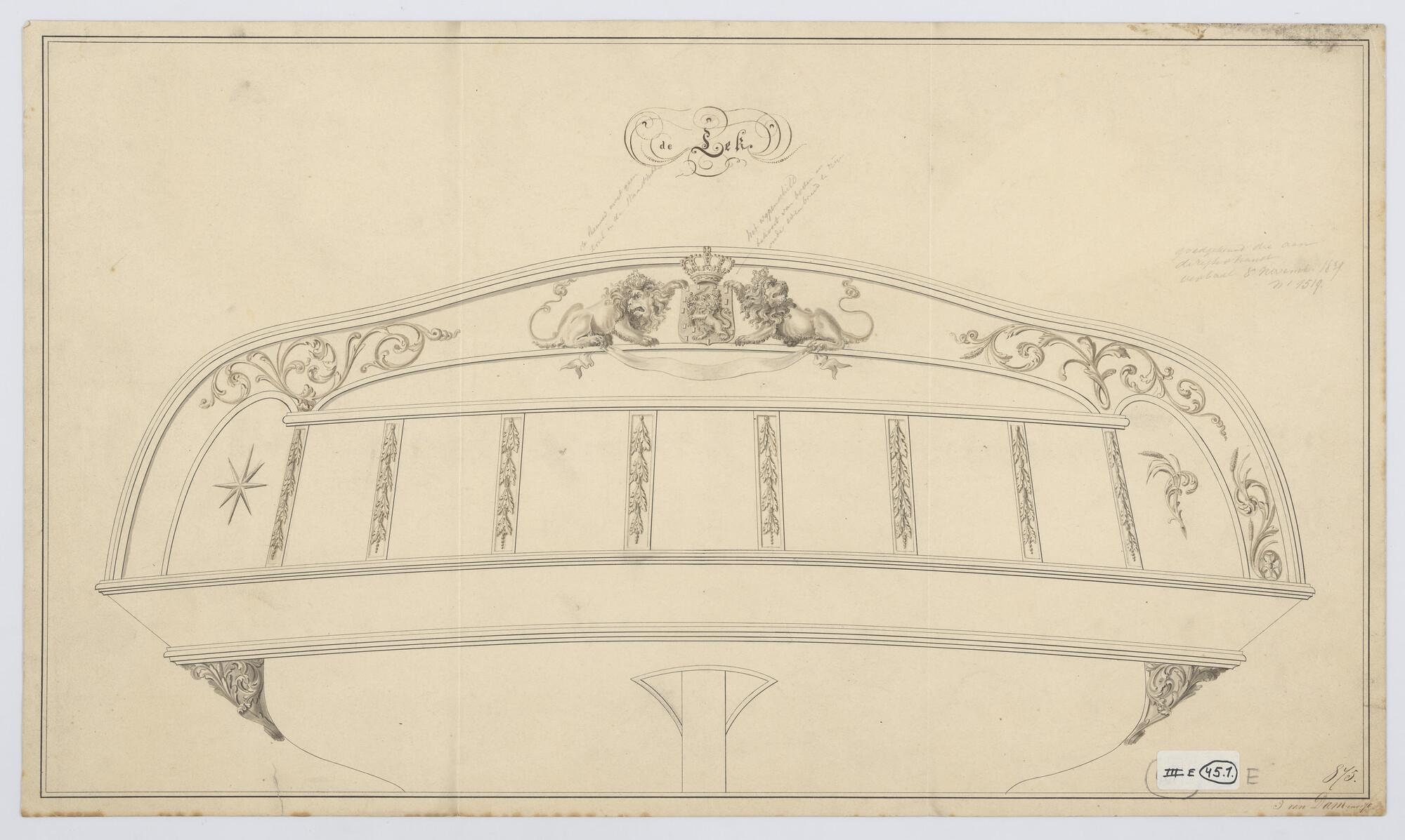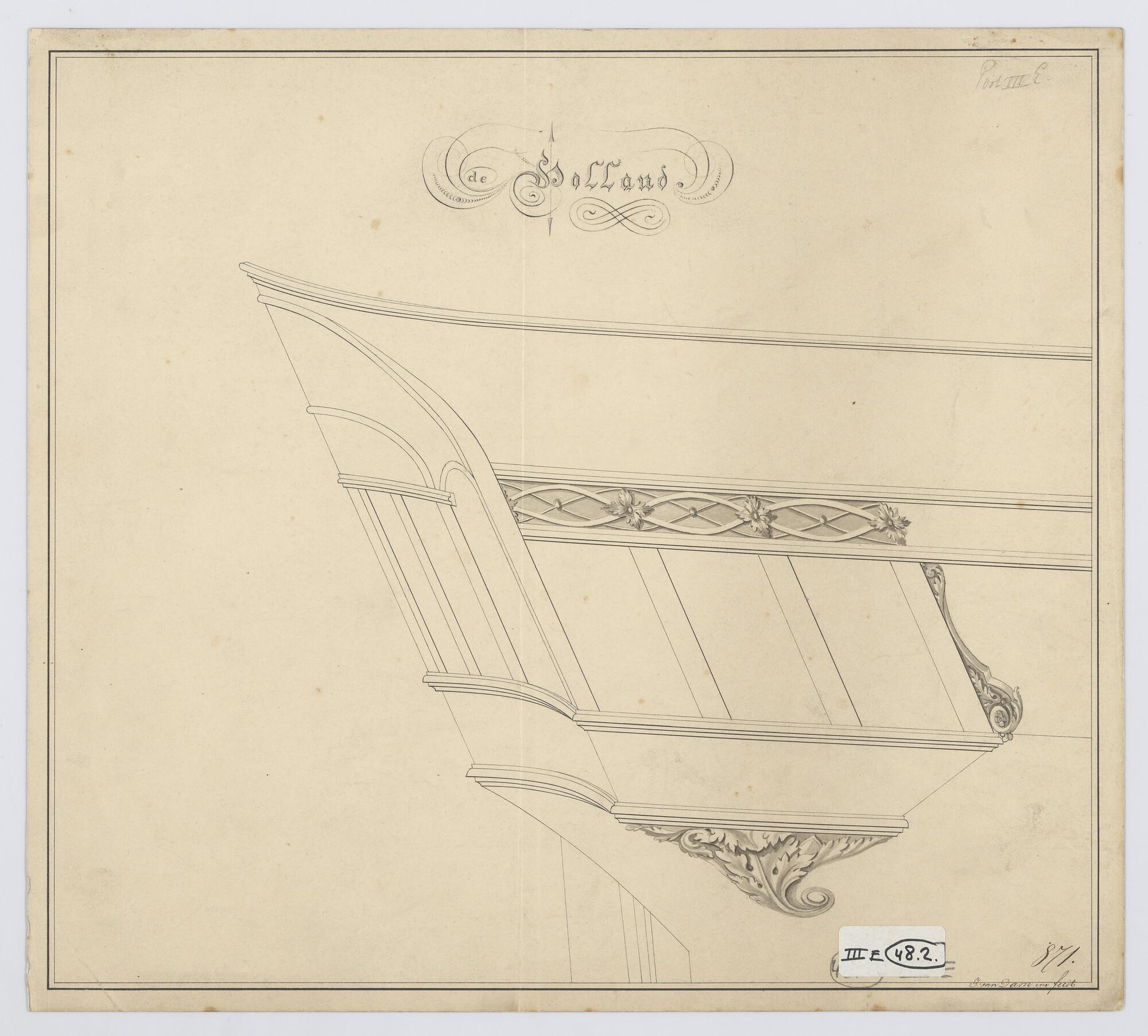 Ontwerp van de spiegel, zijgalerij en scheg voor het...