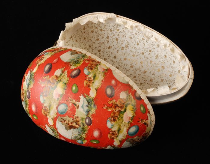 Kartonnen paasei in twee delen, beplakt met papier