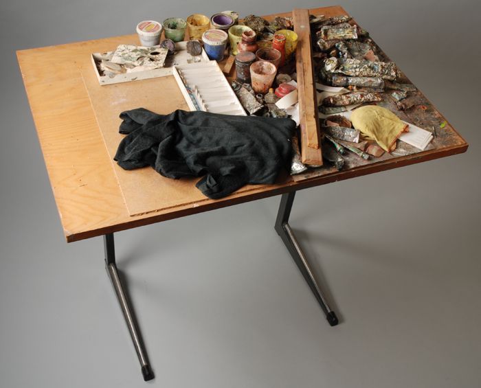 Tafel met schildersmateriaal Dolf Henkes