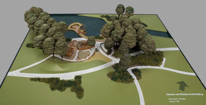 Maquette van Centrumpark Lombardijen op rechthoekige...