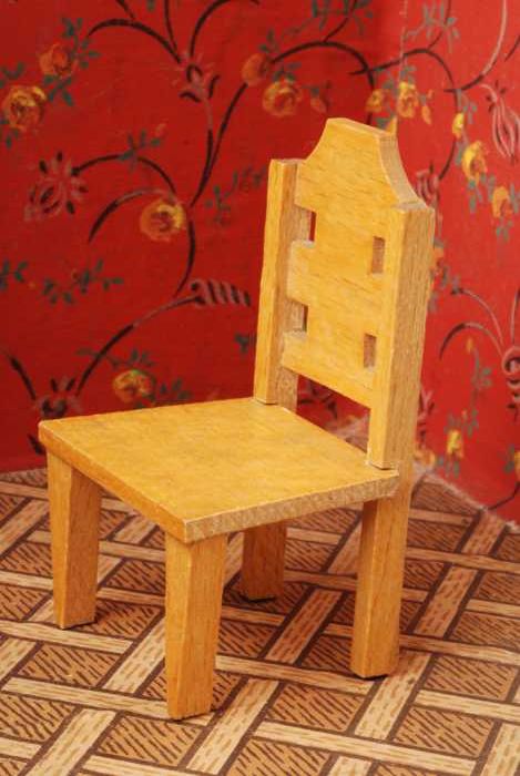 Beukenhouten miniatuur stoel, met dichte regel in ru...