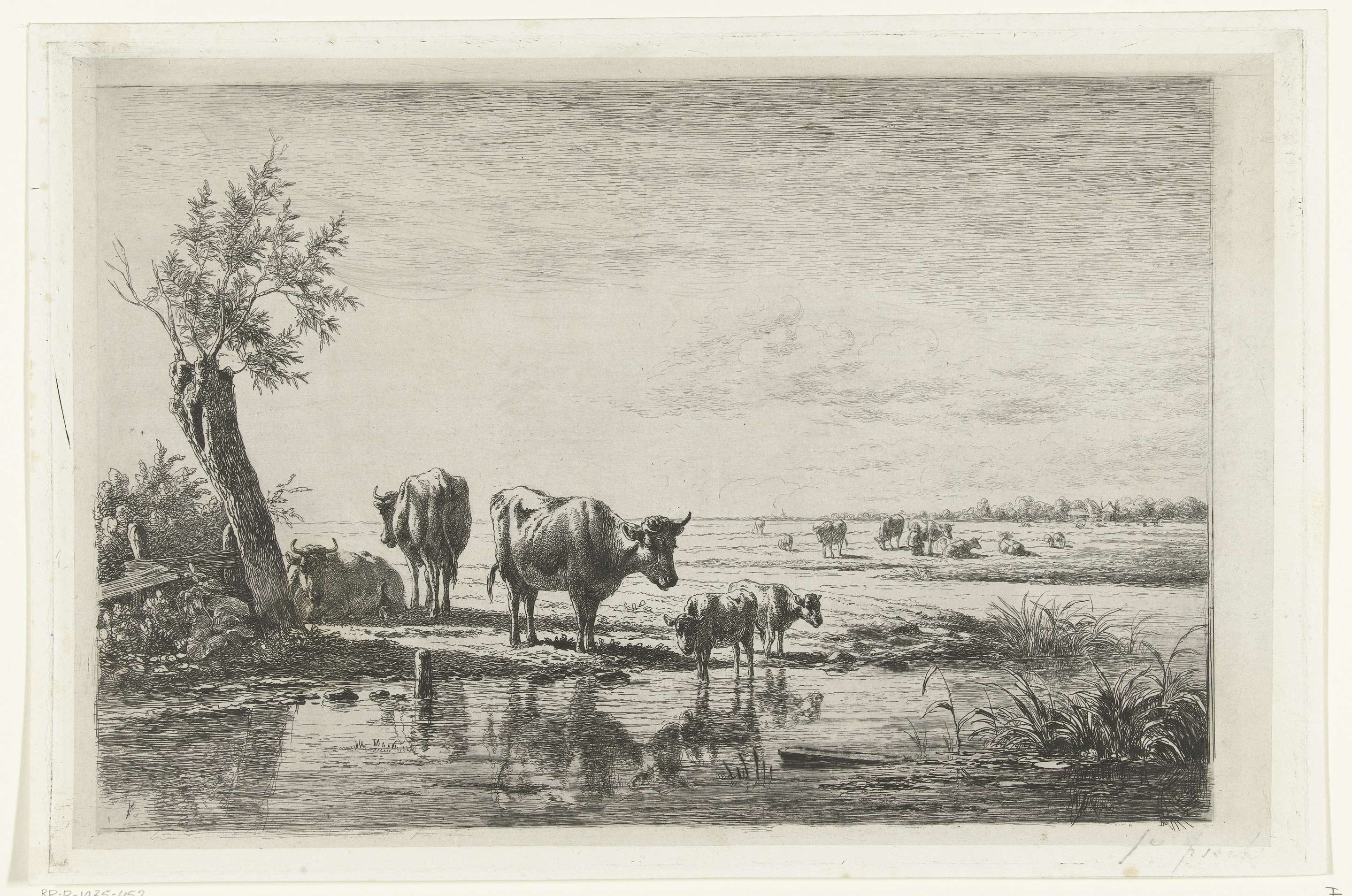 Weidelandschap met koeien bij water