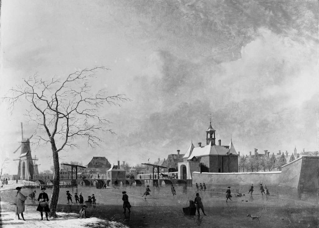 De Singelgracht met de Leidsepoort in de winter