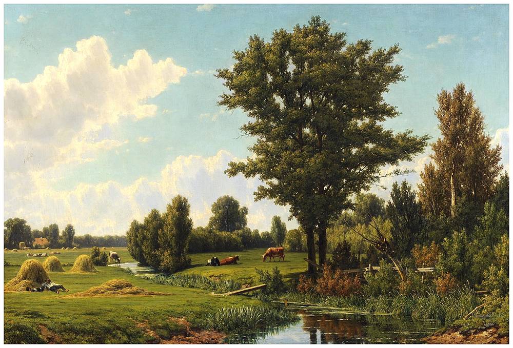 Landschap met slapend boertje en hond
