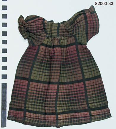 Wit katoenen jurk, bedrukt met rood - zwart blokje m...