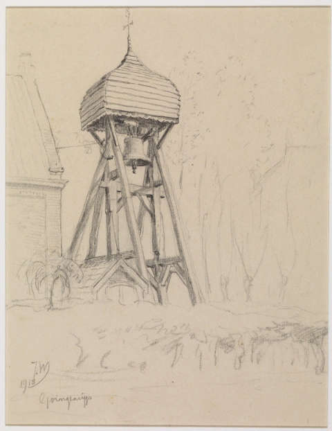 Gezicht op een klokkestoel met klok te Goïngarijp