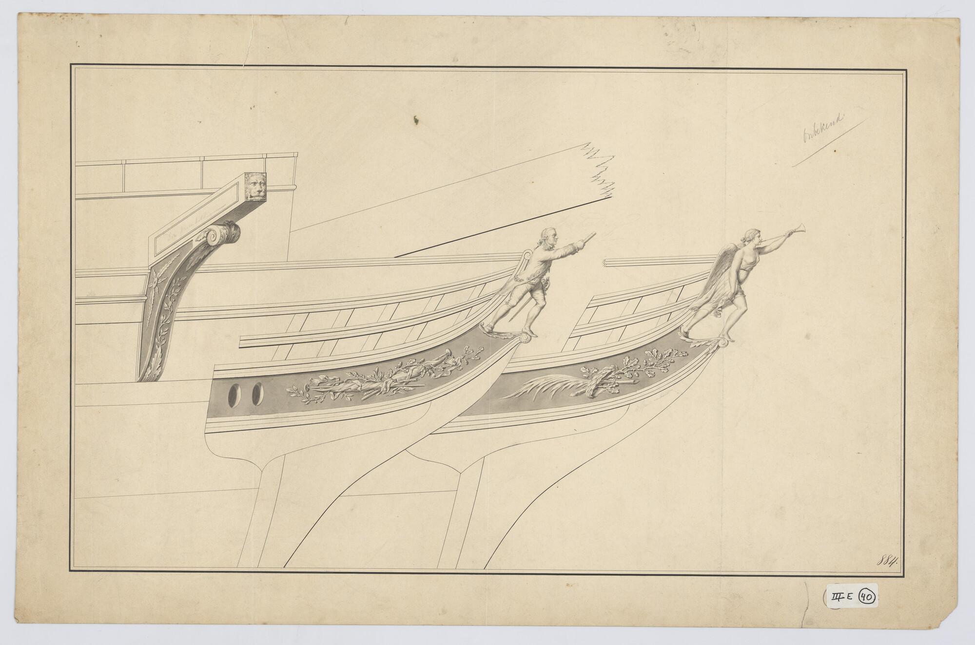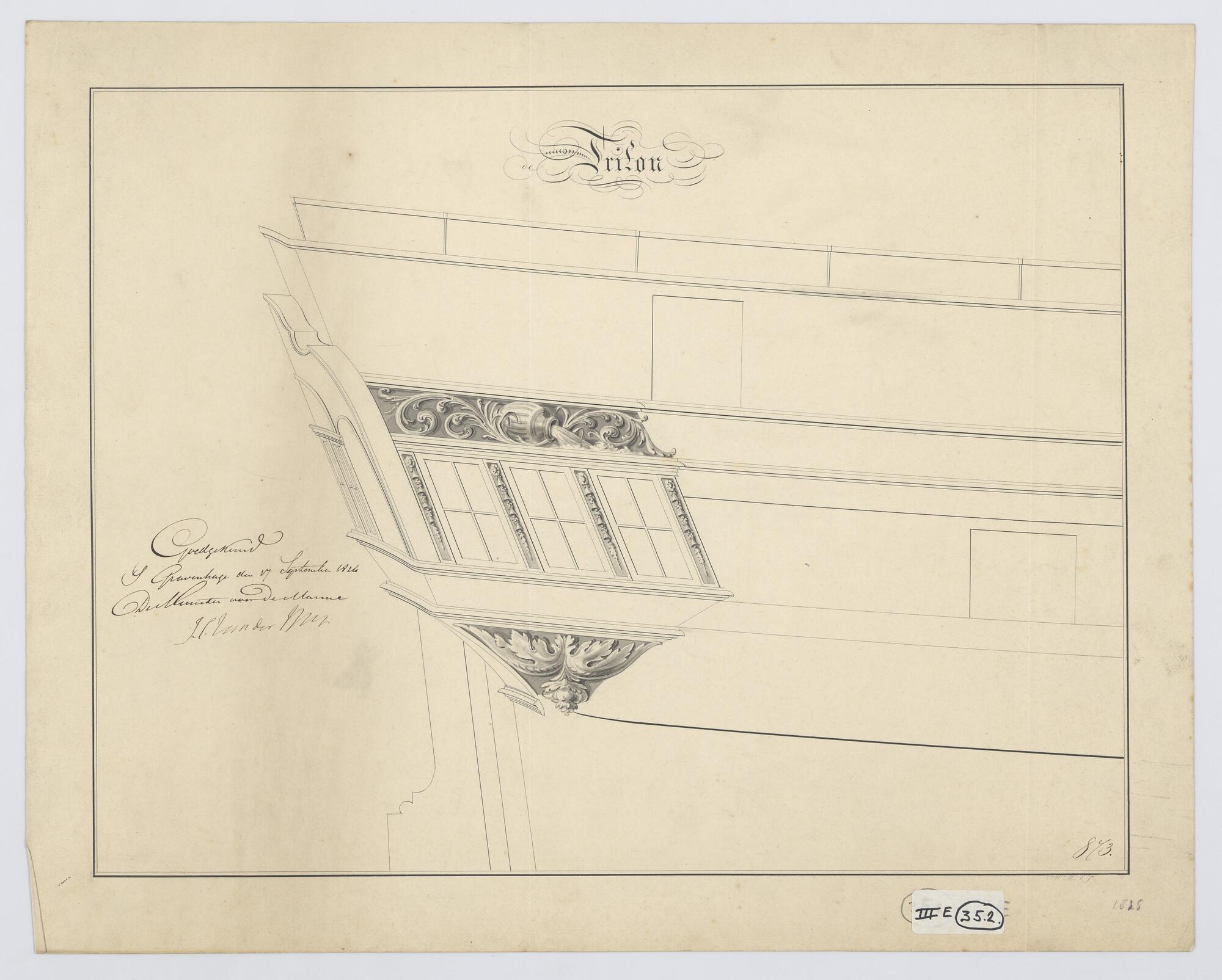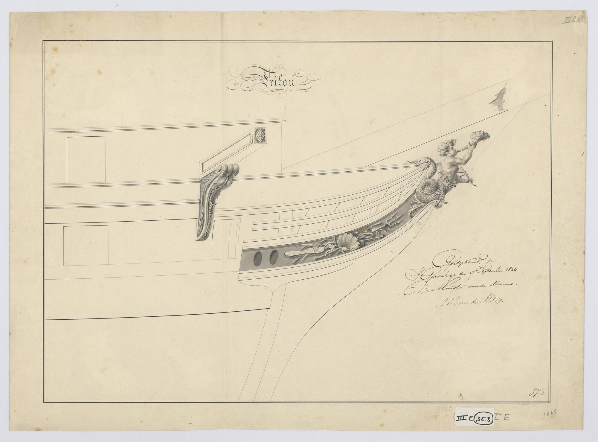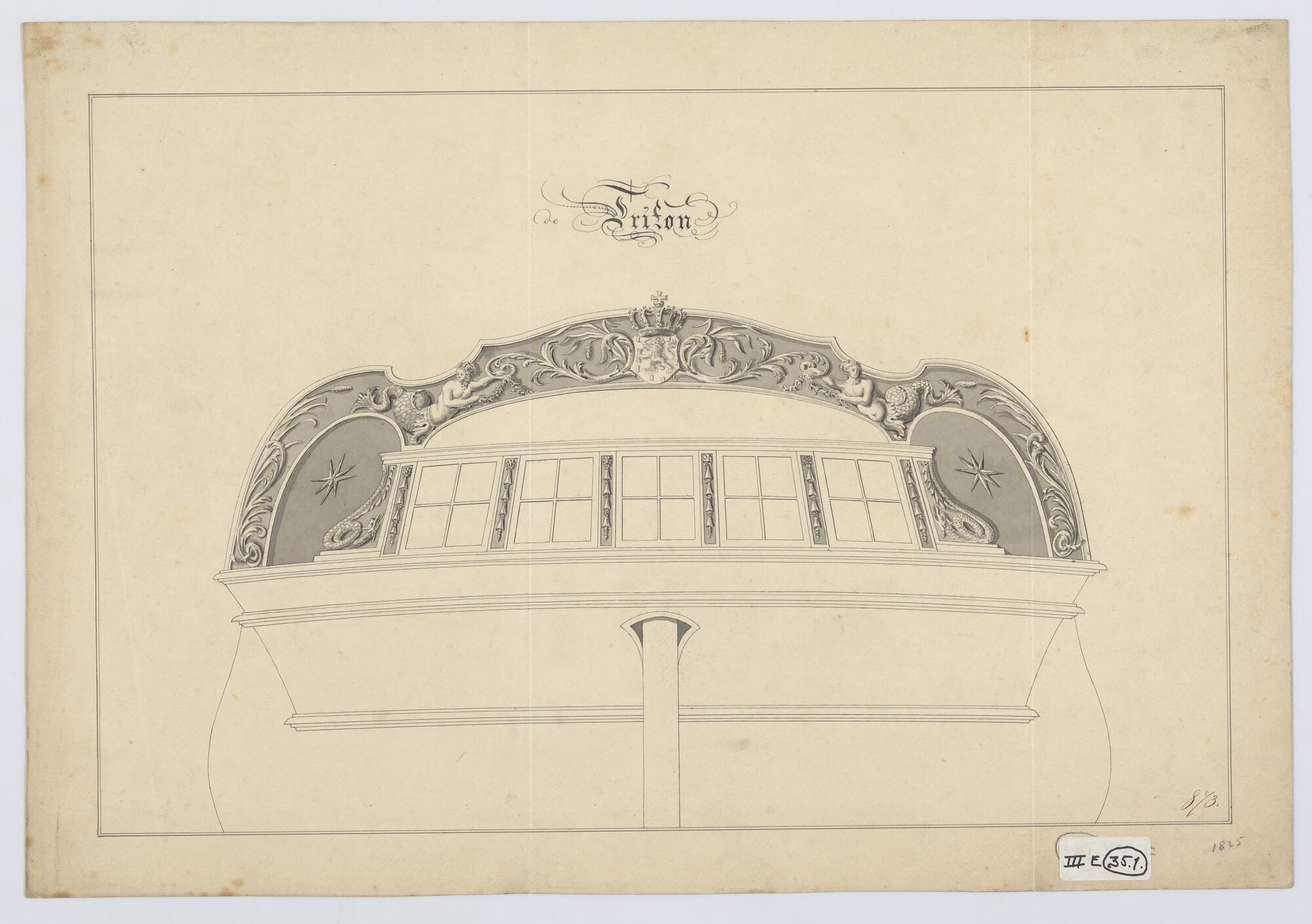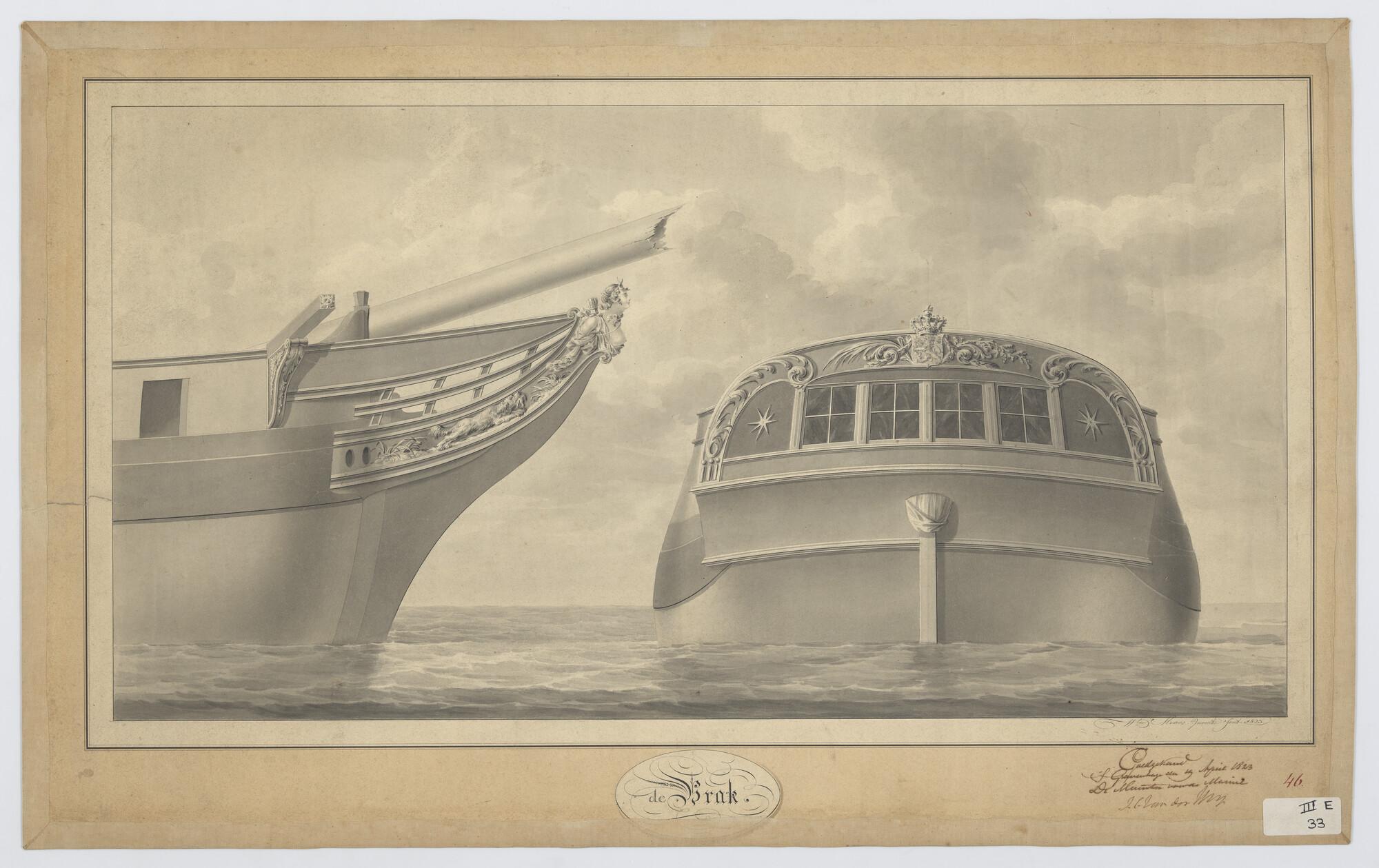 Ontwerp spiegel en voorschip van de avisobrik Brak