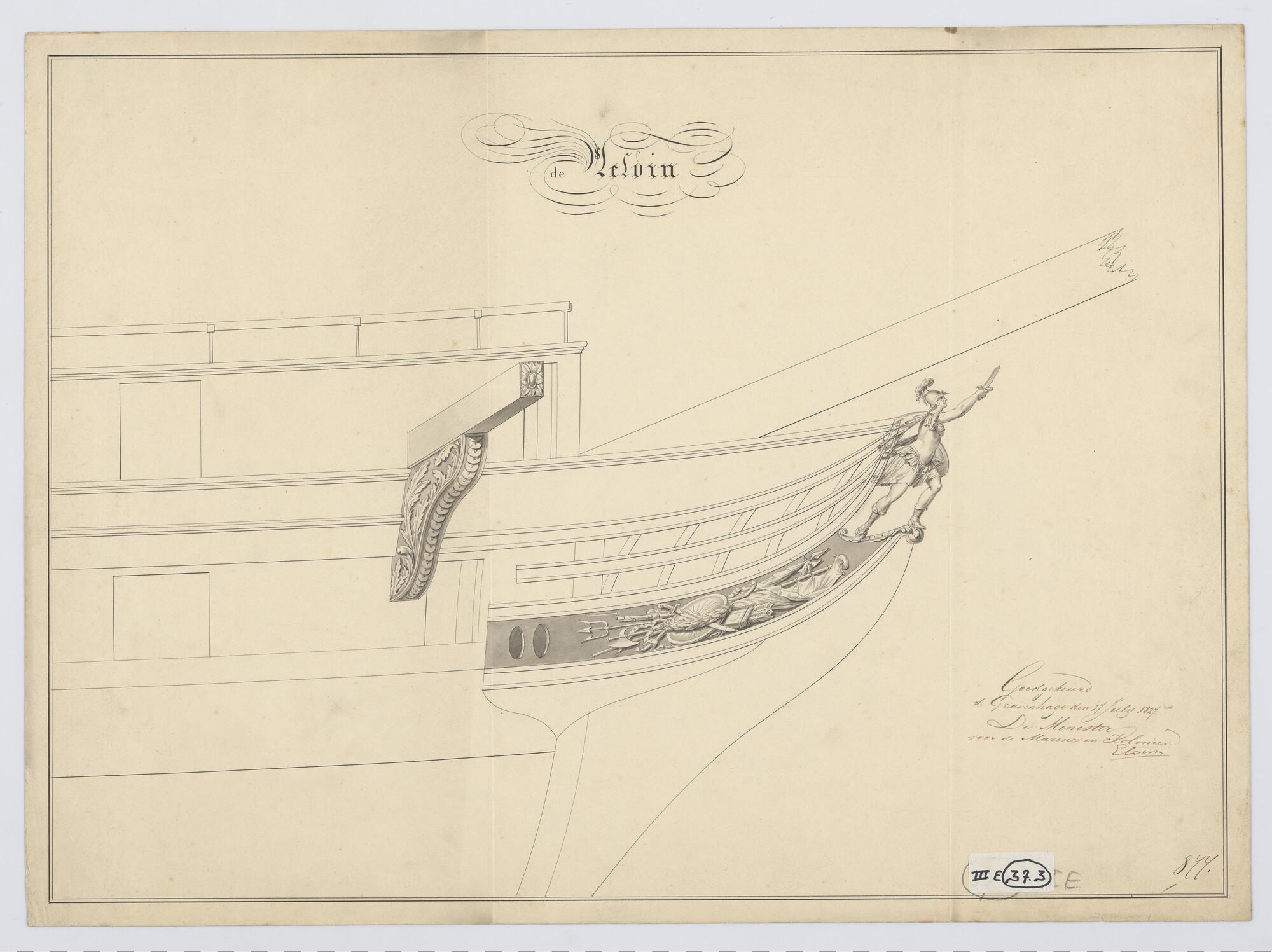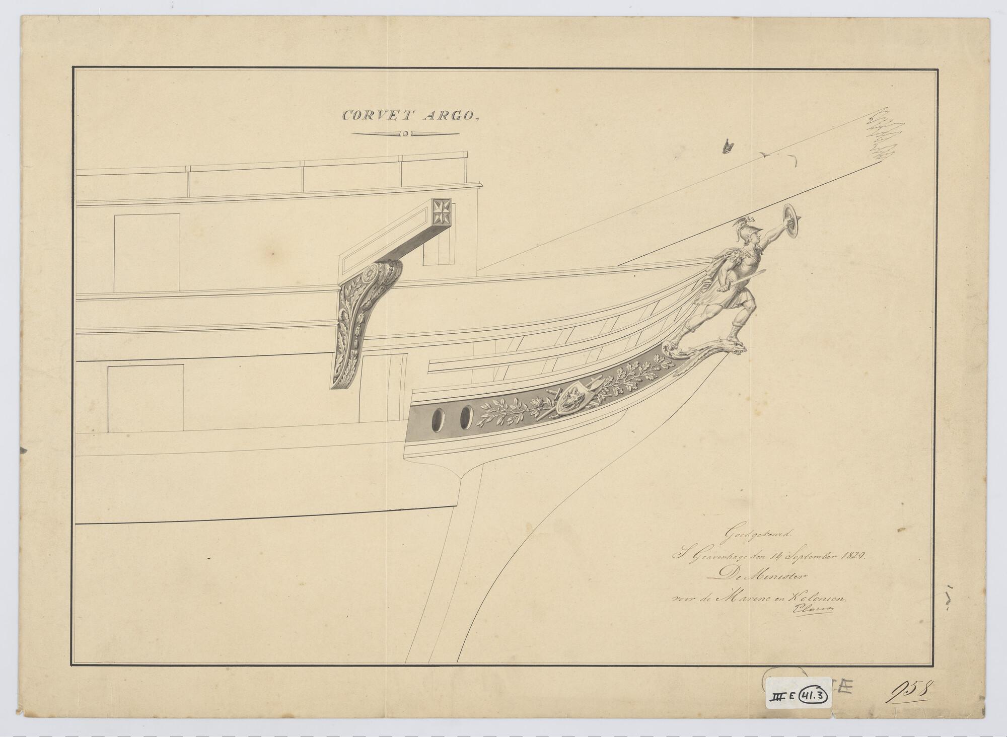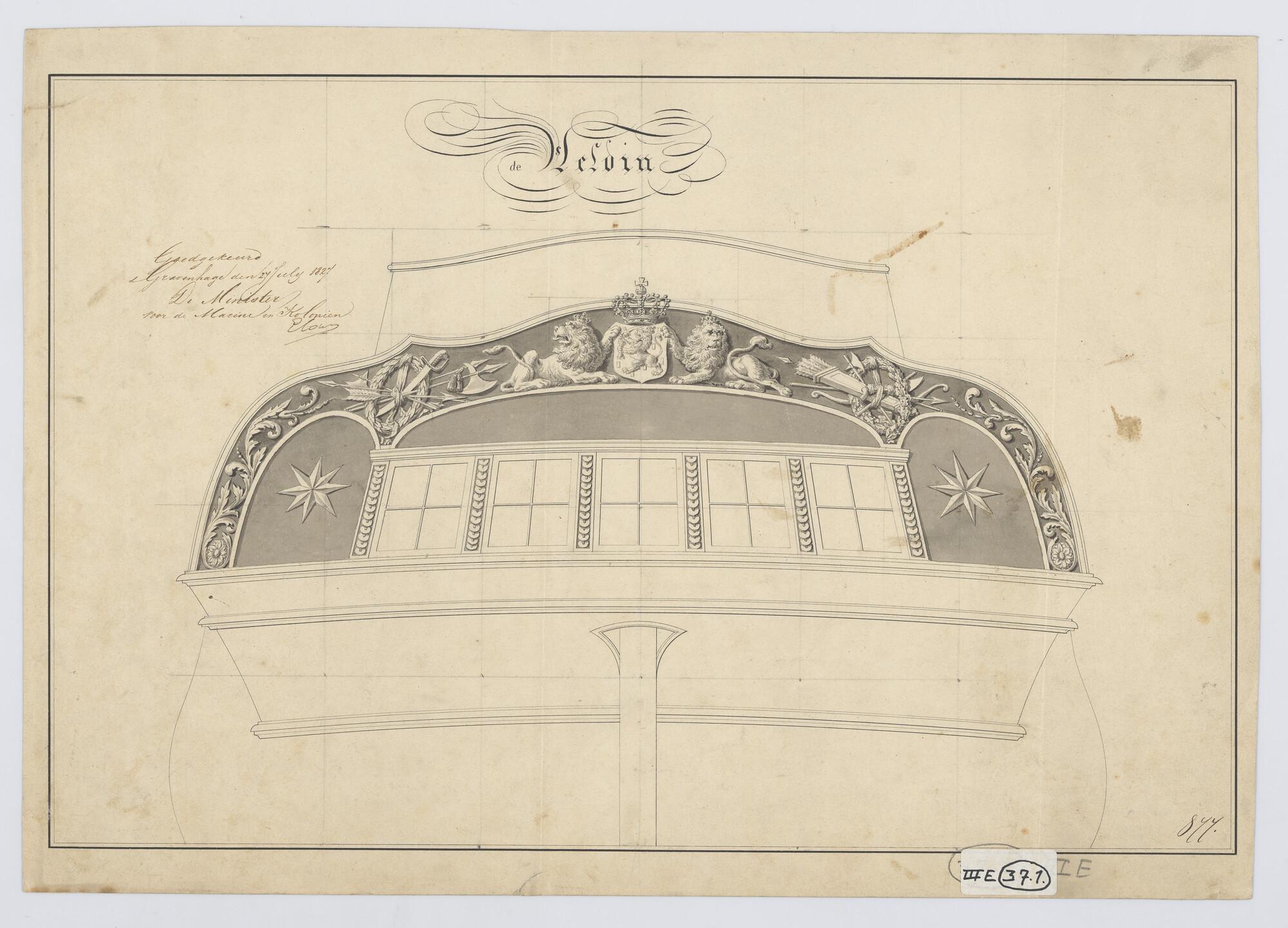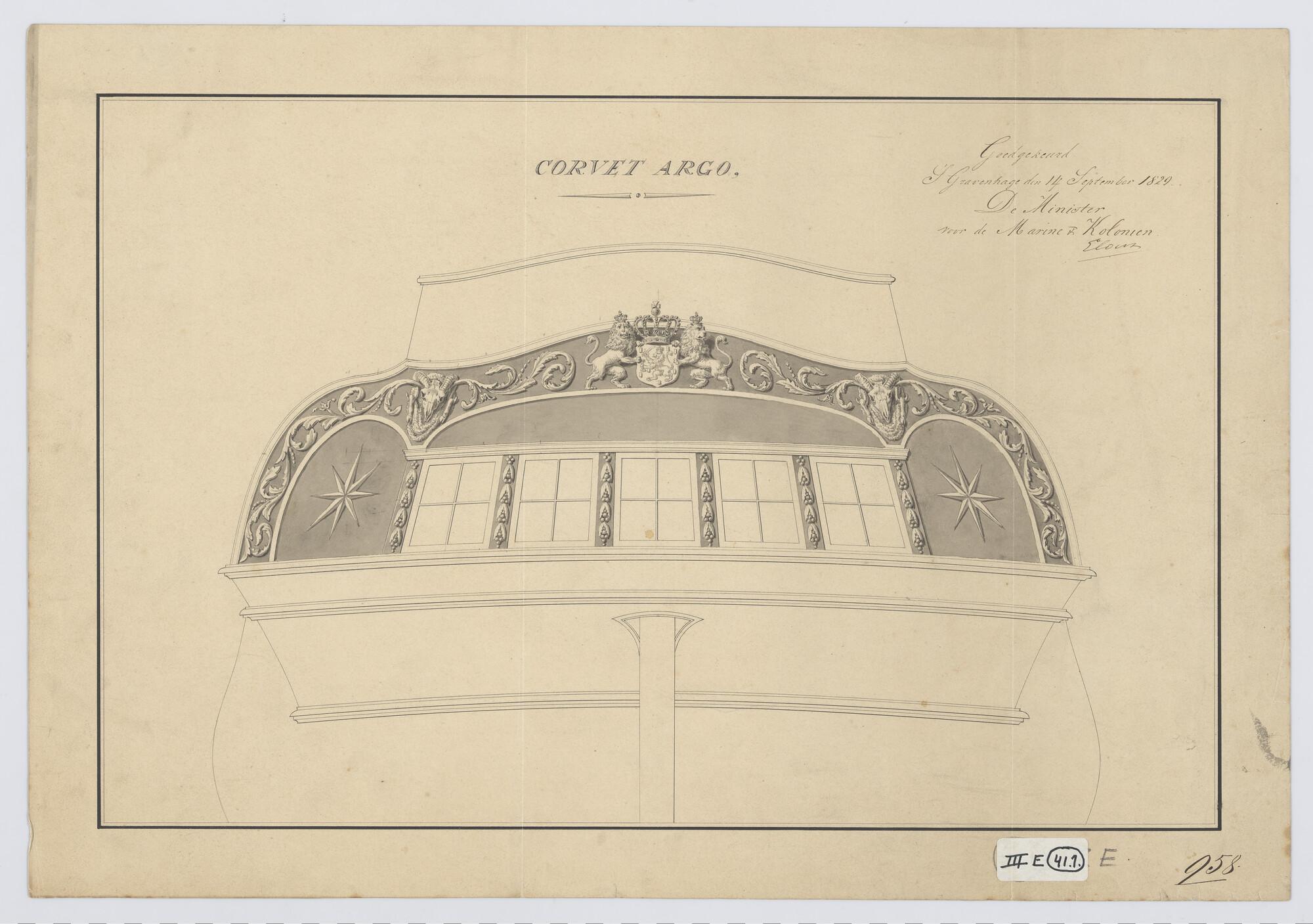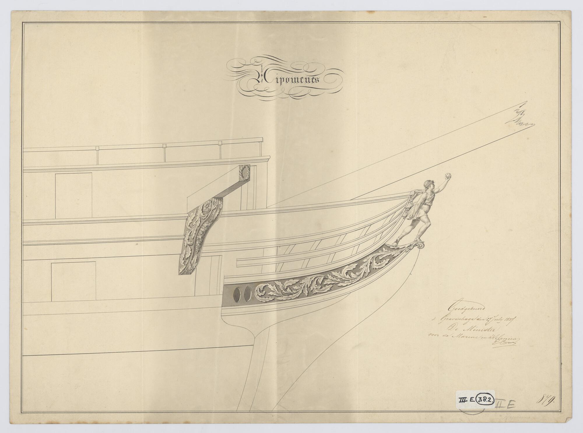 Ontwerp spiegel en voorschip van de avisobrik Brak