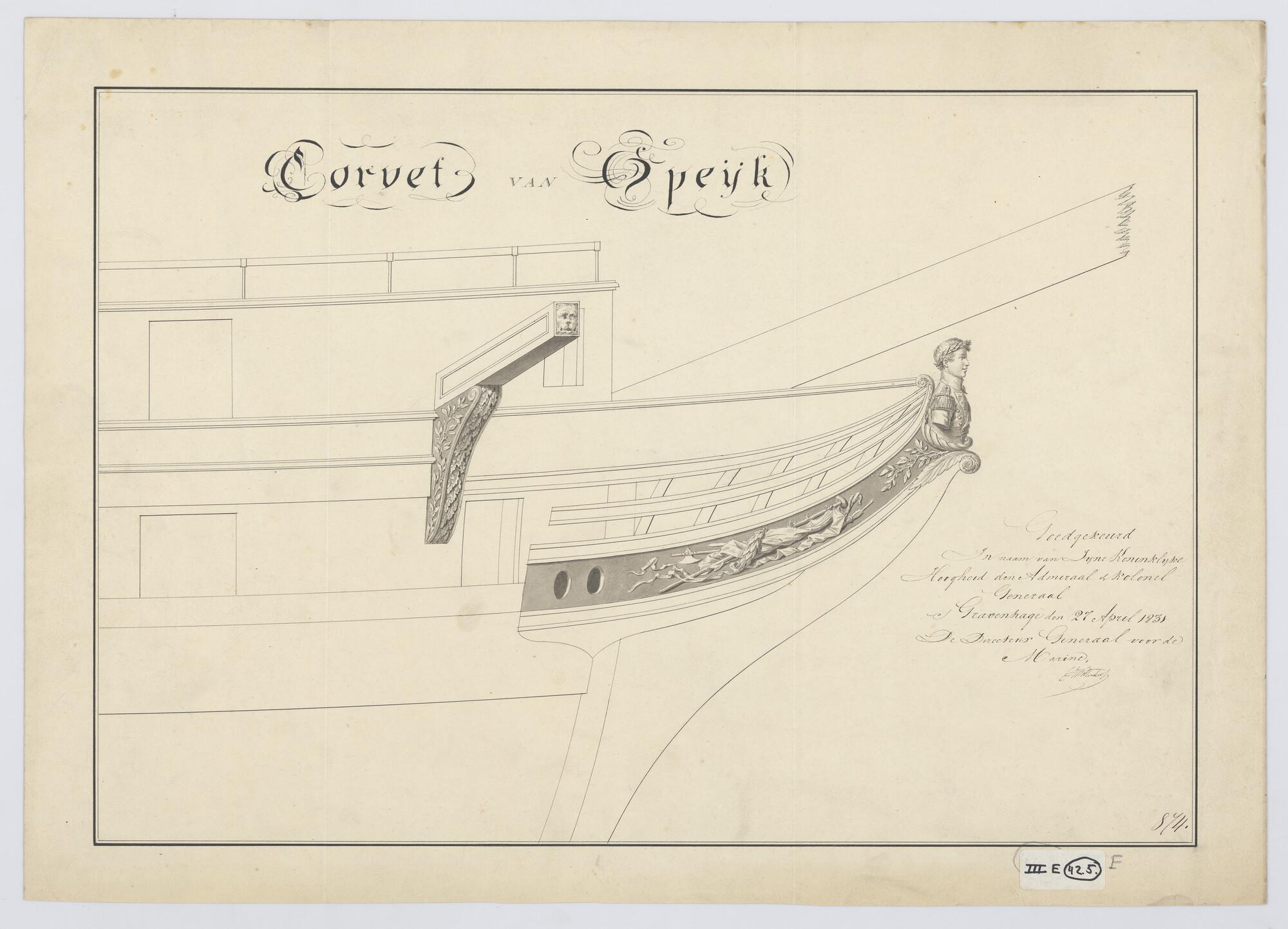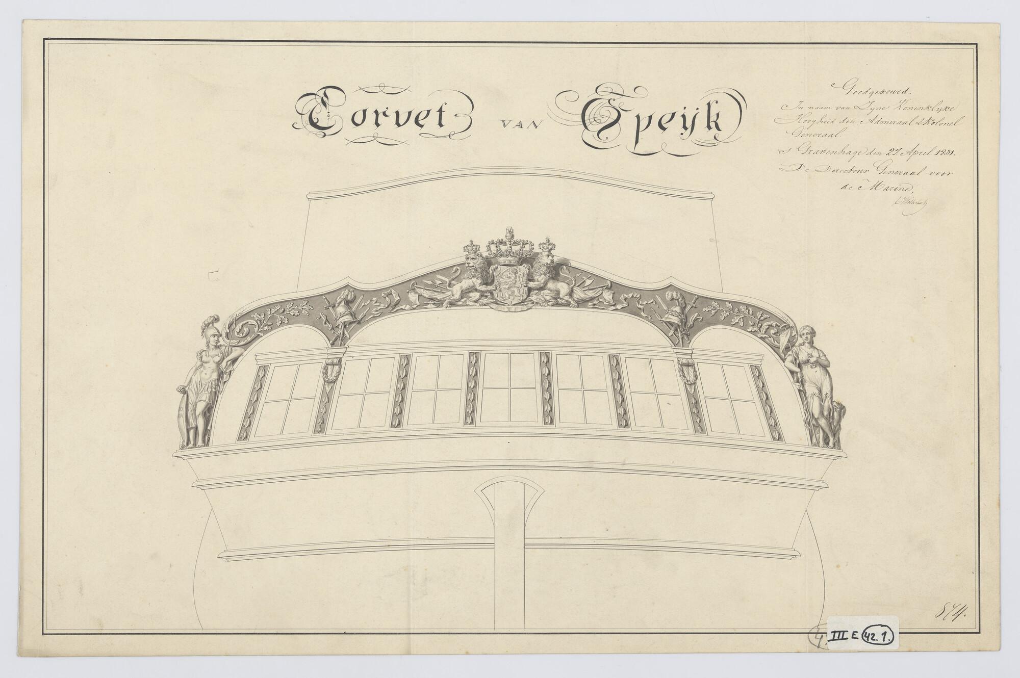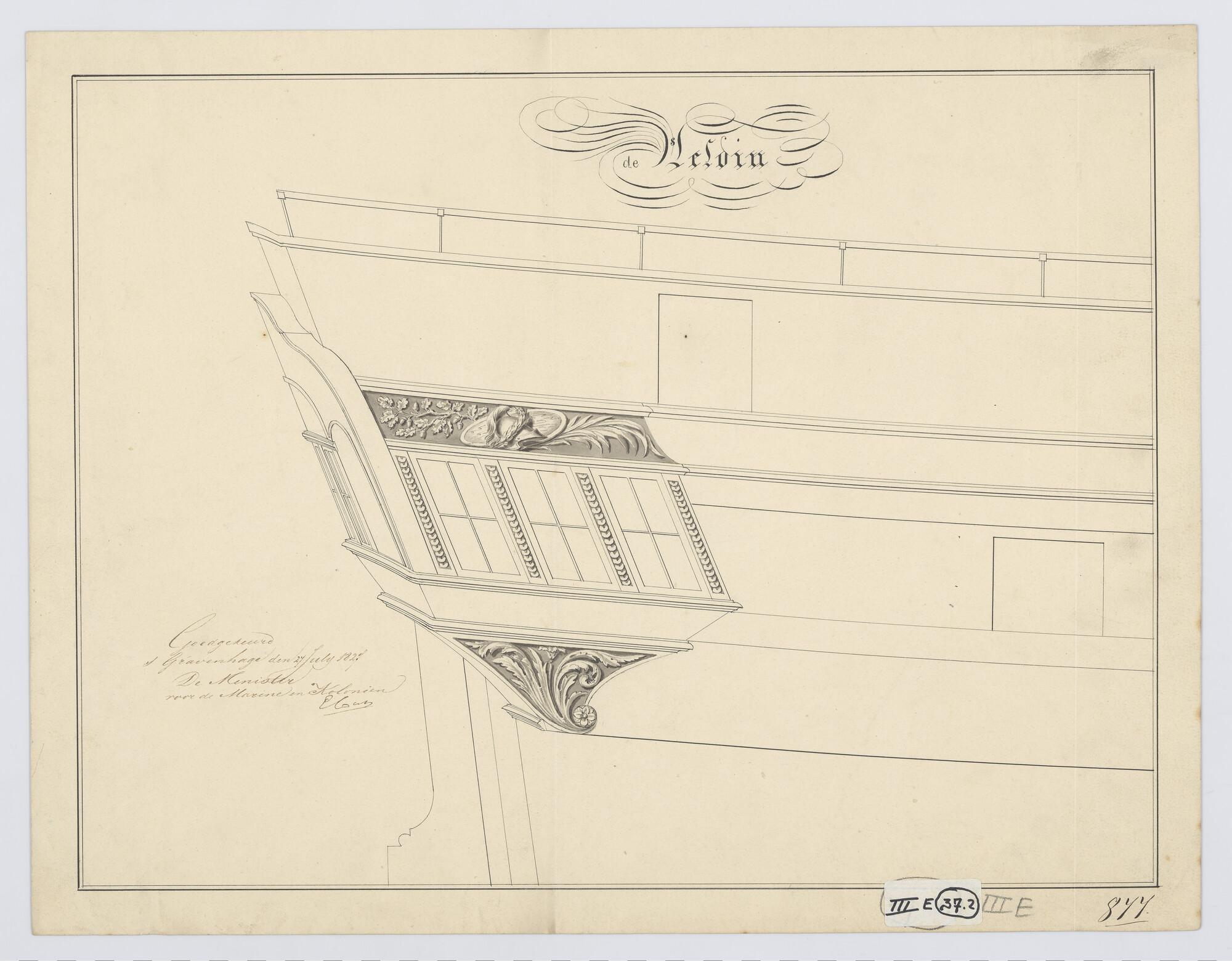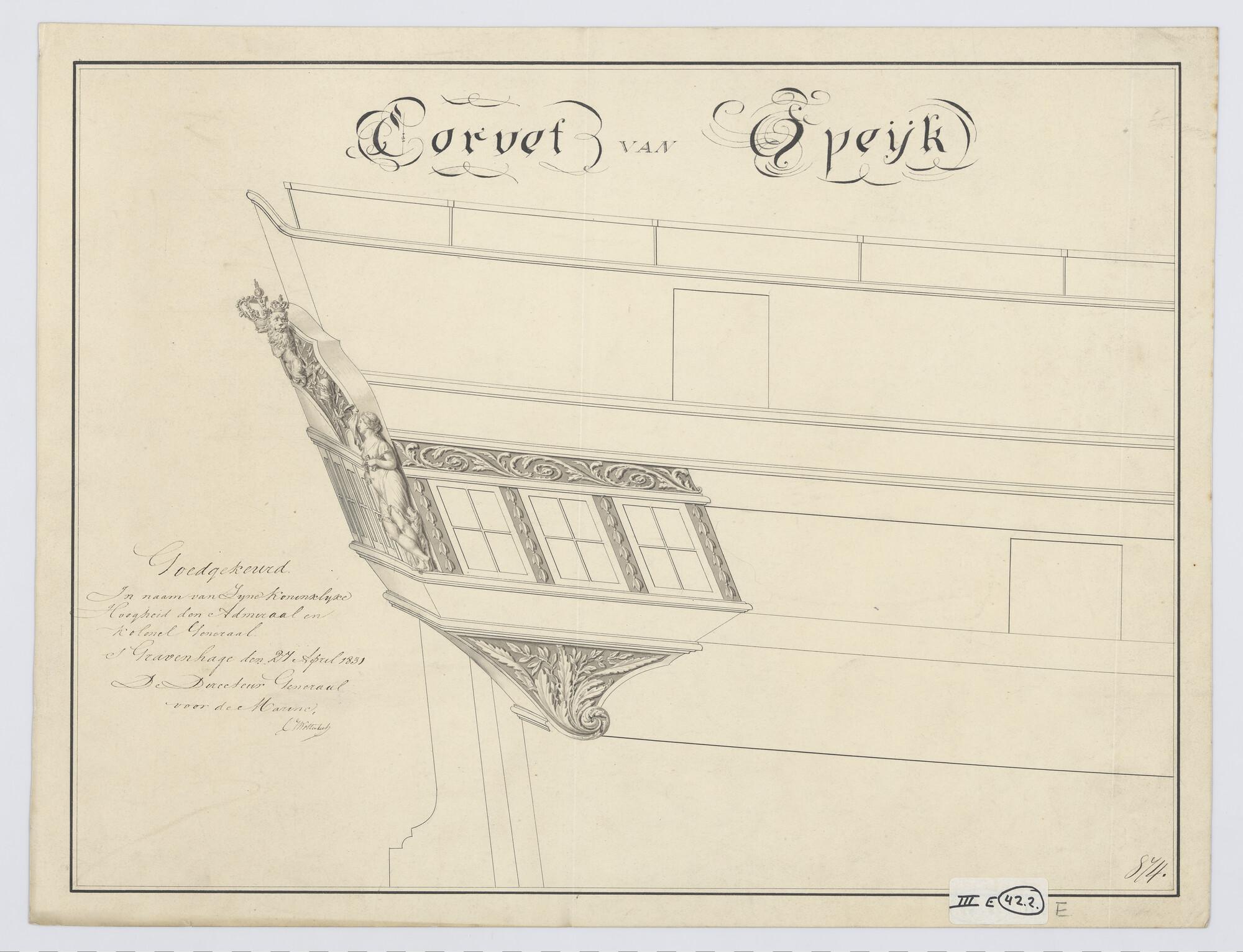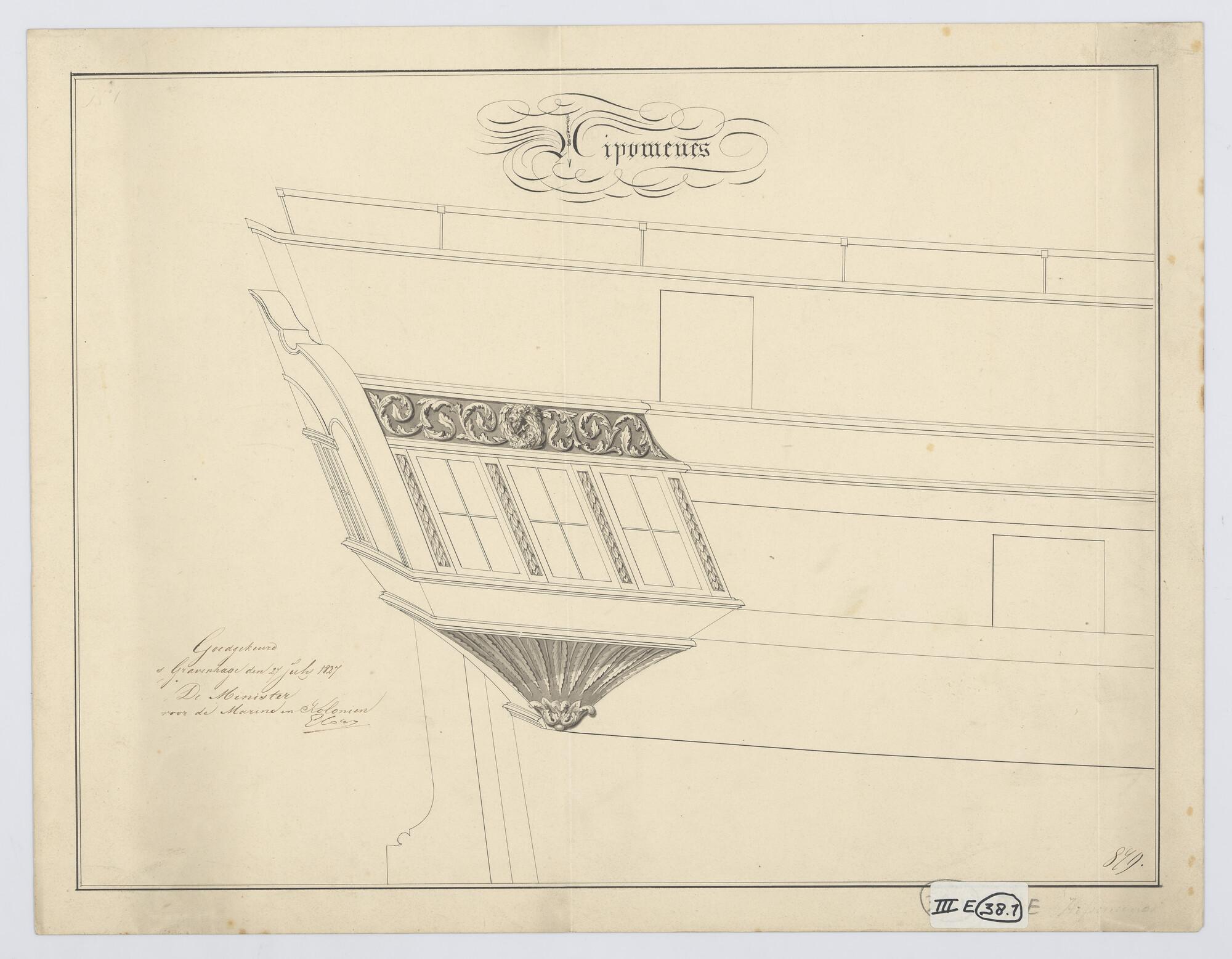 Ontwerp spiegel en voorschip van de avisobrik Brak