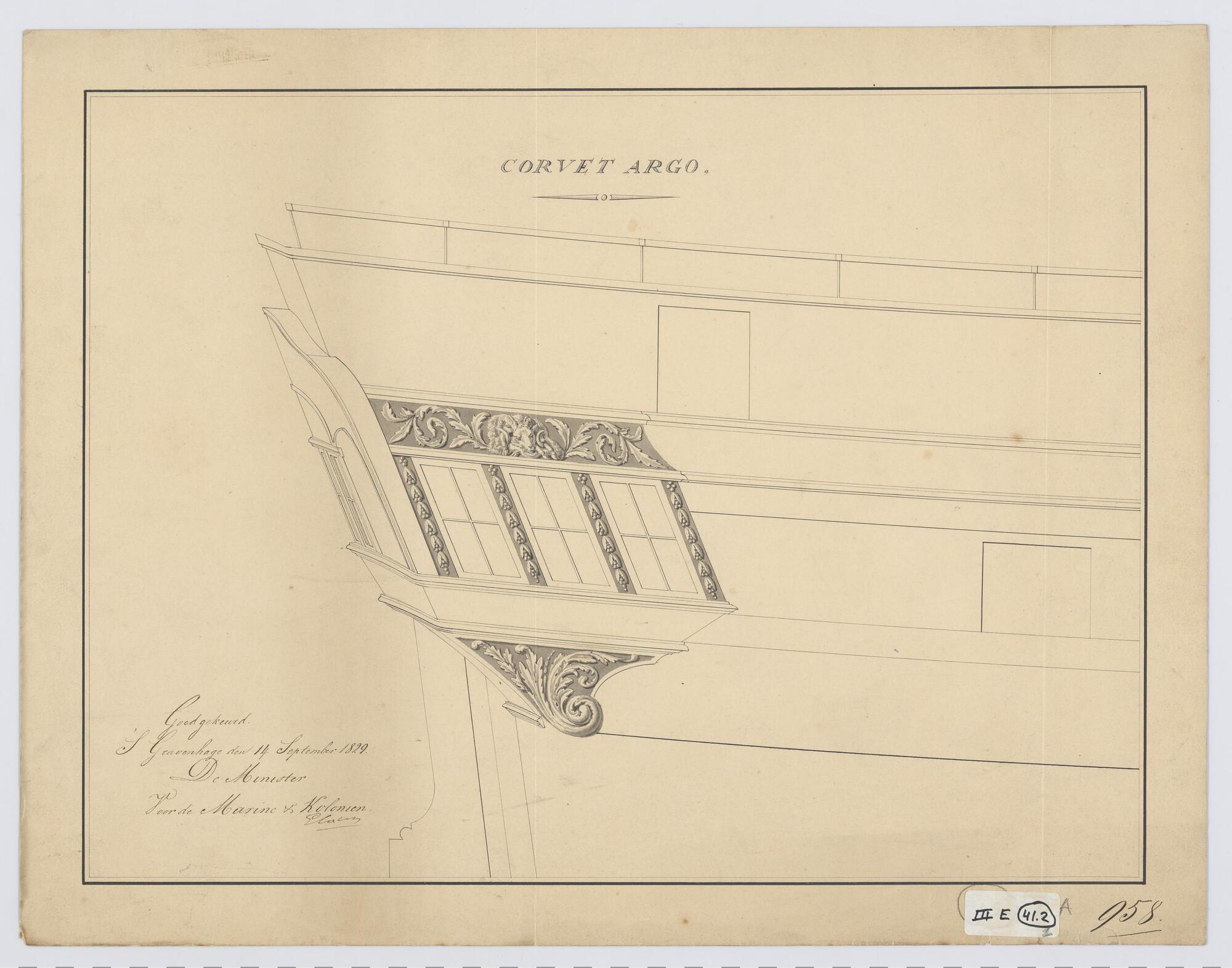 Zijgalerij met drie ramen van het kuilkorvet 'Argo'