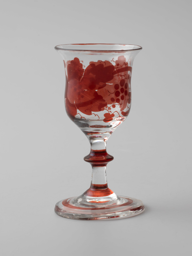 Glas met in rood geschilderde wijnranken