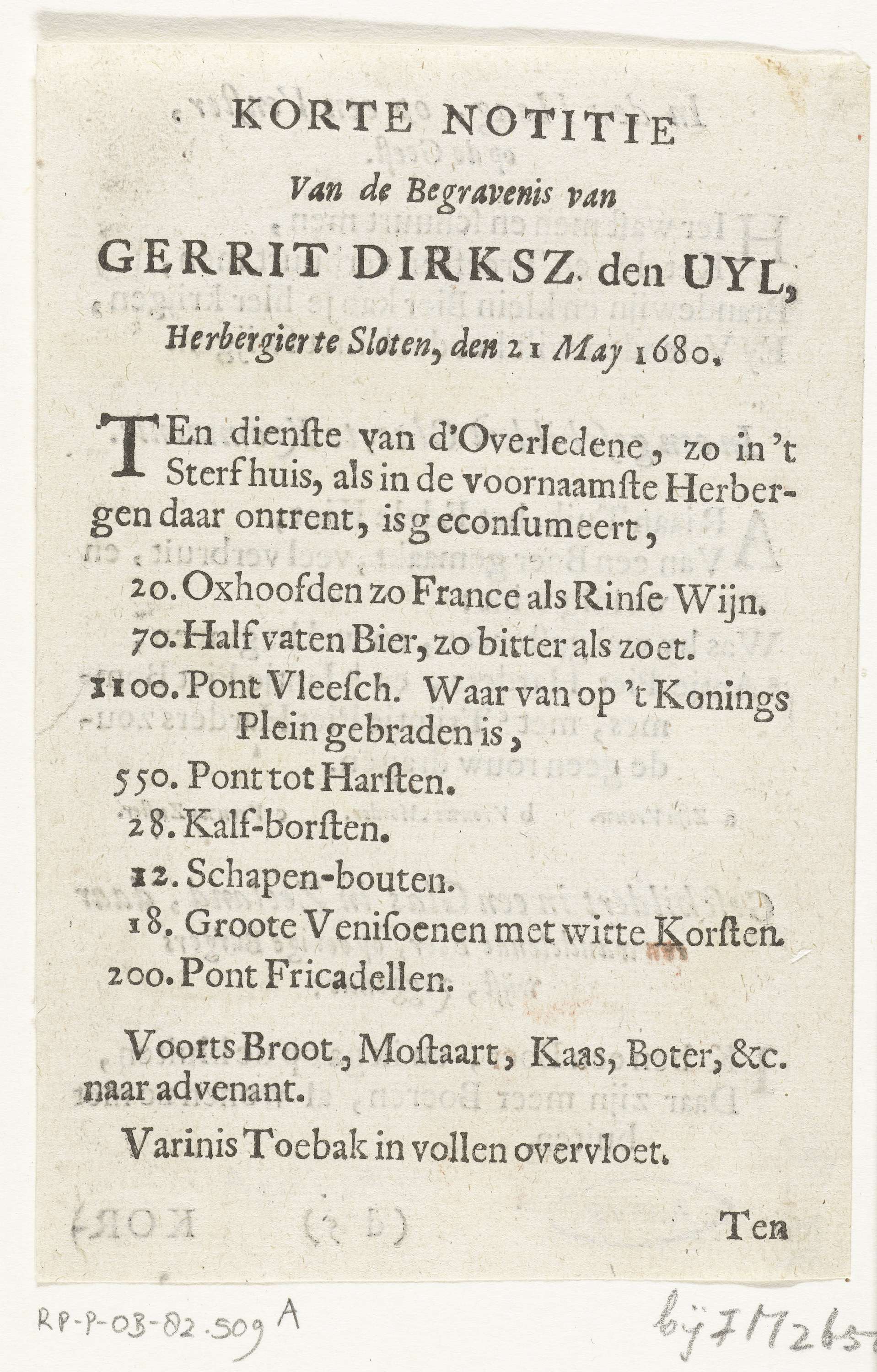 Beschrijving van het feestmaal bij de begrafenis van...