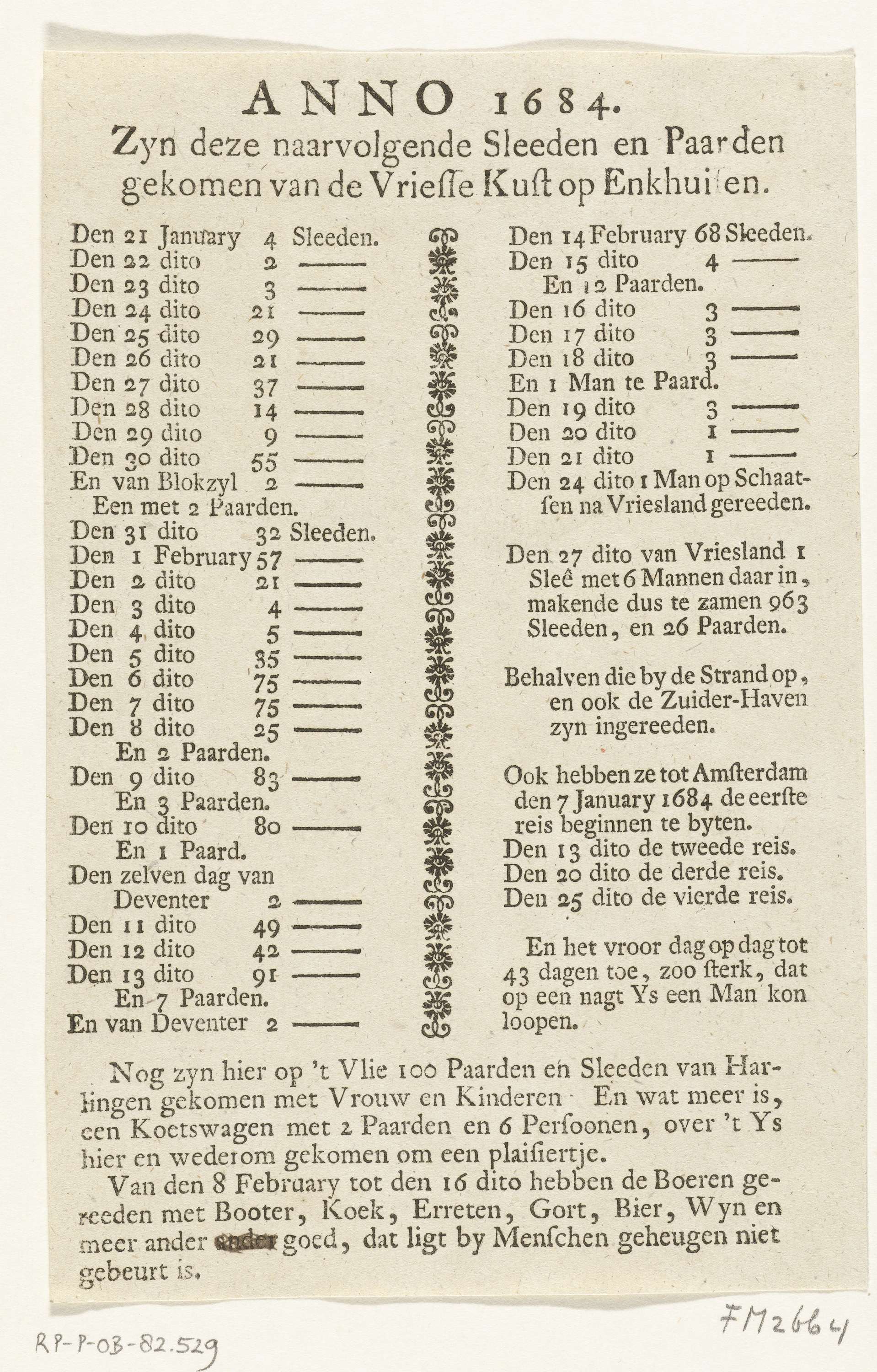 Lijst van de sleden en paarden die van Friesland naa...