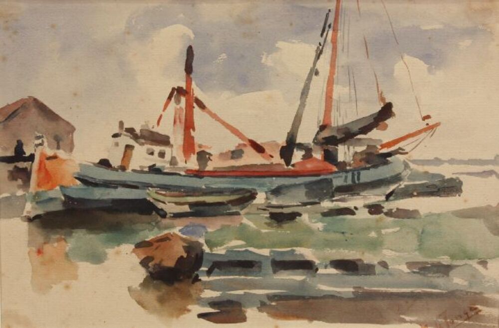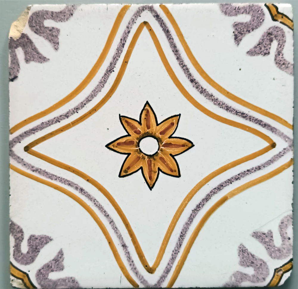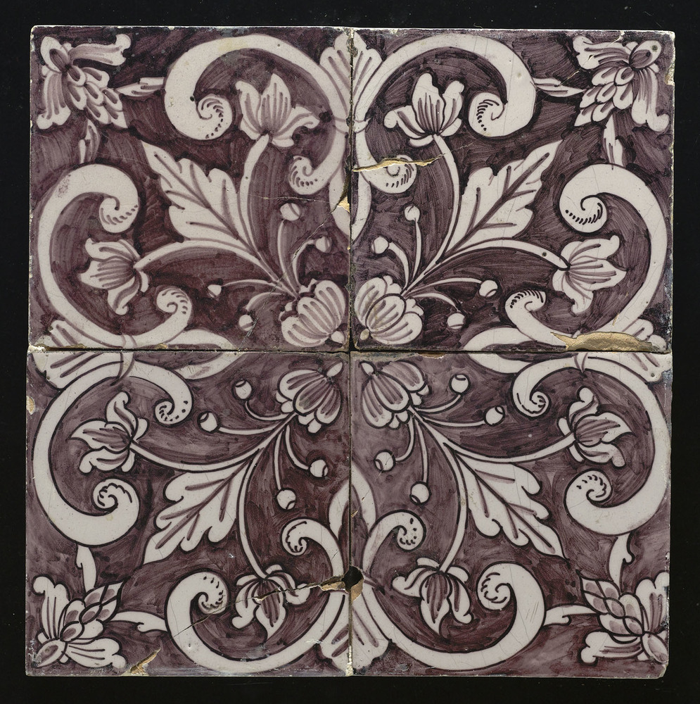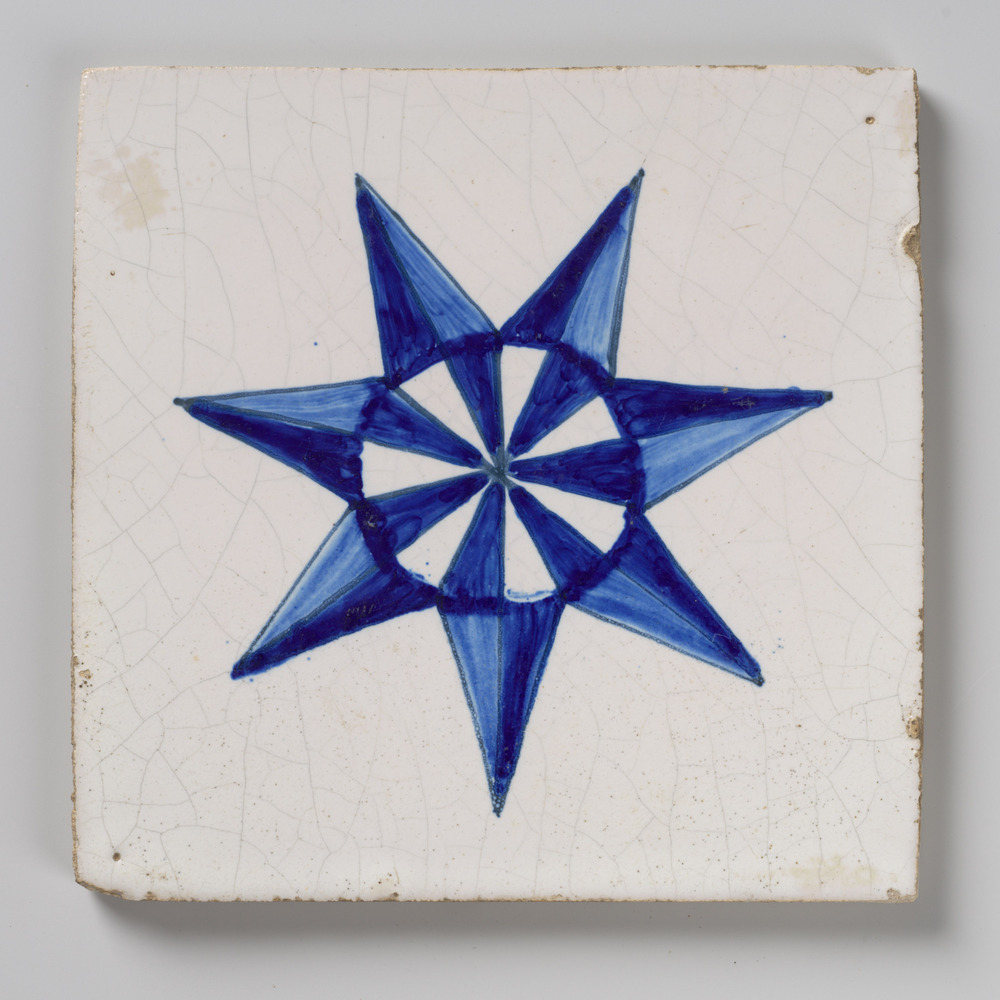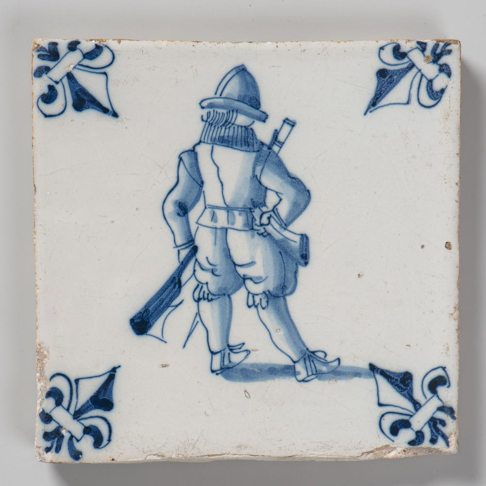 tegel van keramiek met tinglazuur, voorstellende: so...