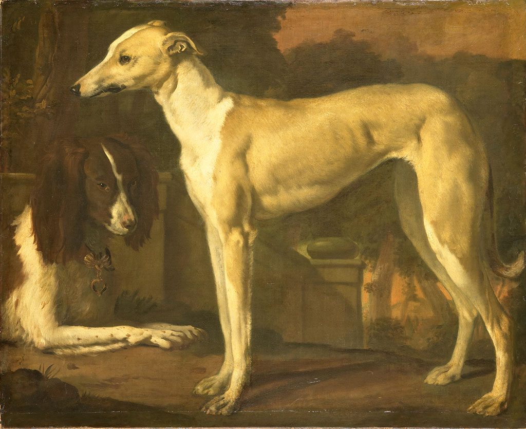 Een hazewindhond en een patrijshond