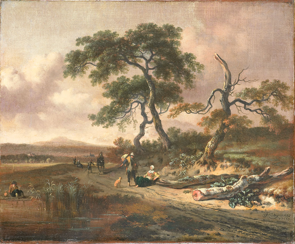 Landschap met marskramer en rustende vrouw
