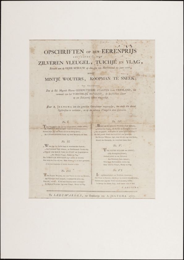 Opschriften op den eerenprijs bestaande in een zilve...