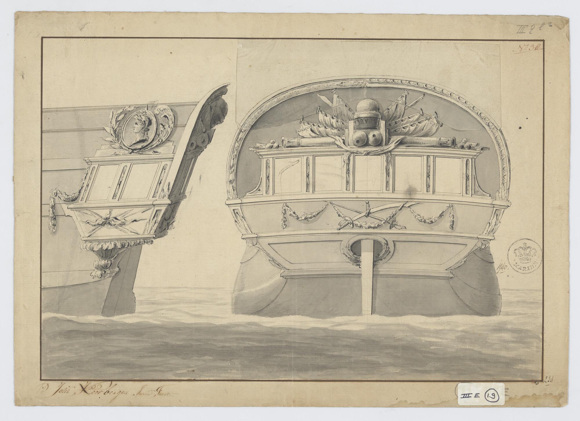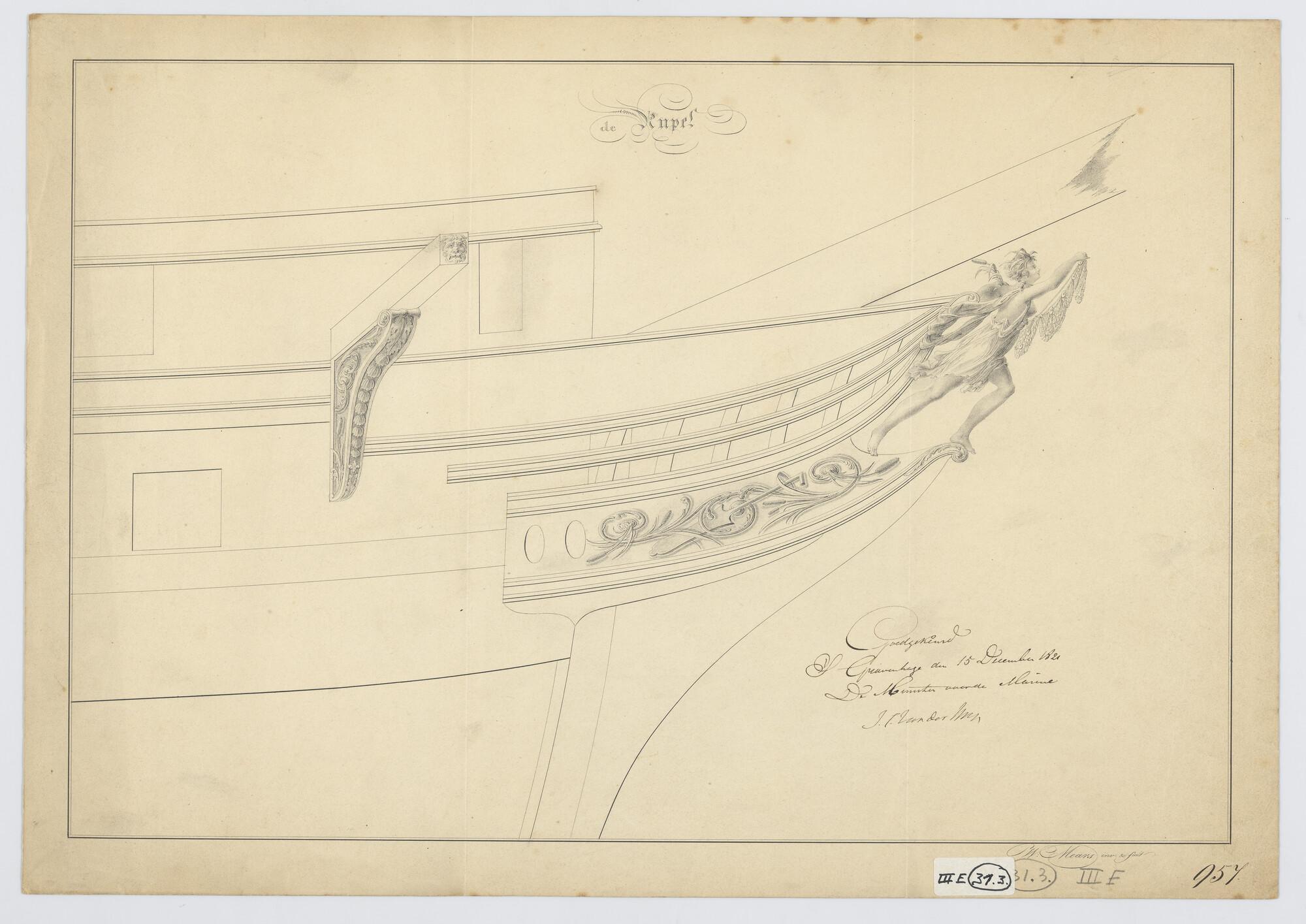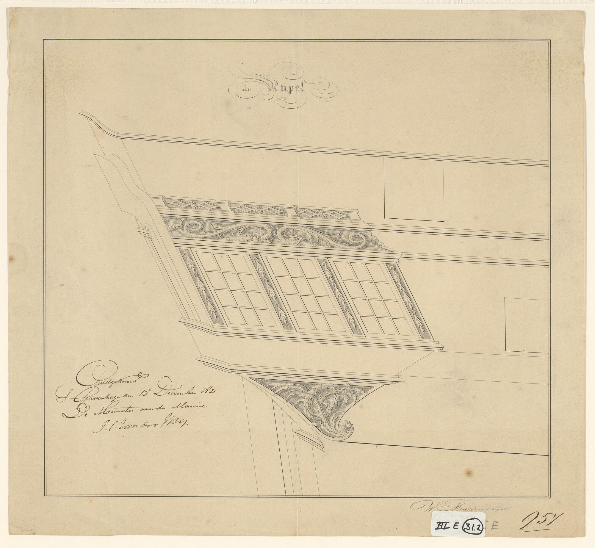 Versiering bovenkant spiegel van het fregat 2de klas...