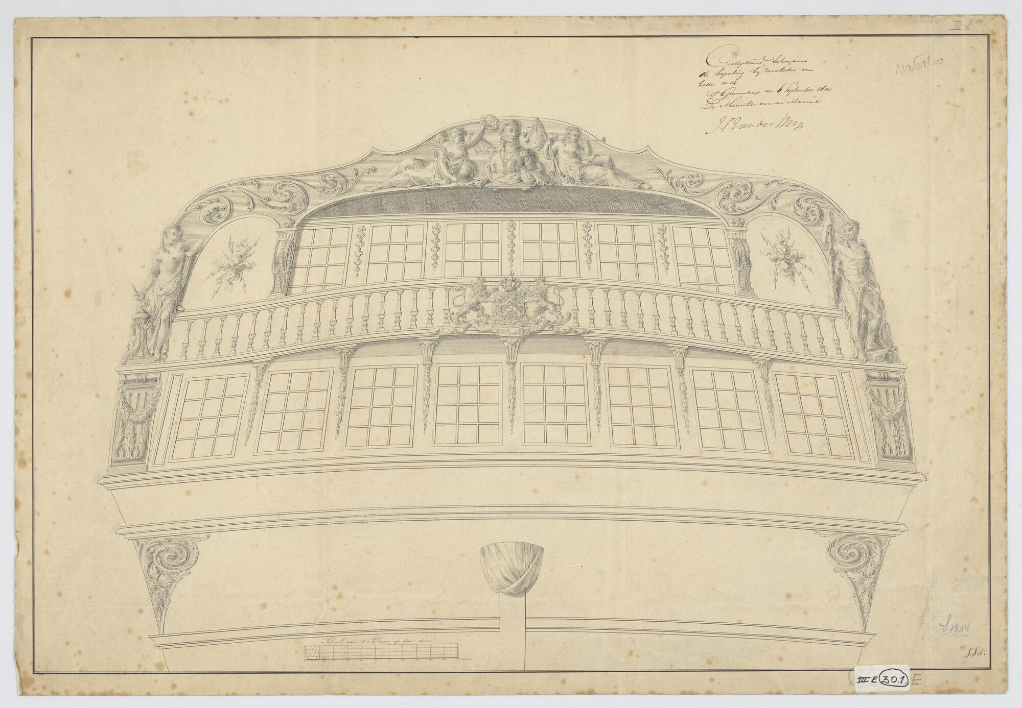 Zijgalerij en schegbeeld van het linieschip Zr.Ms. W...