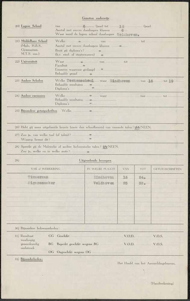 Brief van het Ministerie van Defensie aan dhr Hey op...