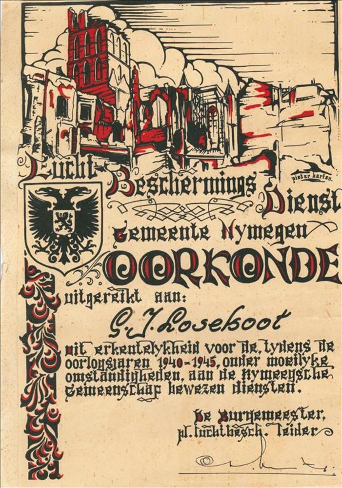 Oorkonde, Lucht Beschermingsdienst, gemeente Nijmege...