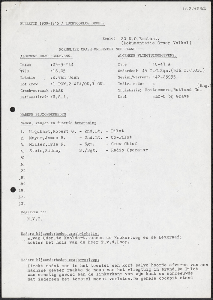 Bulletin 1939-1945/Luchtoorlog-Groep, Formulier Cras...