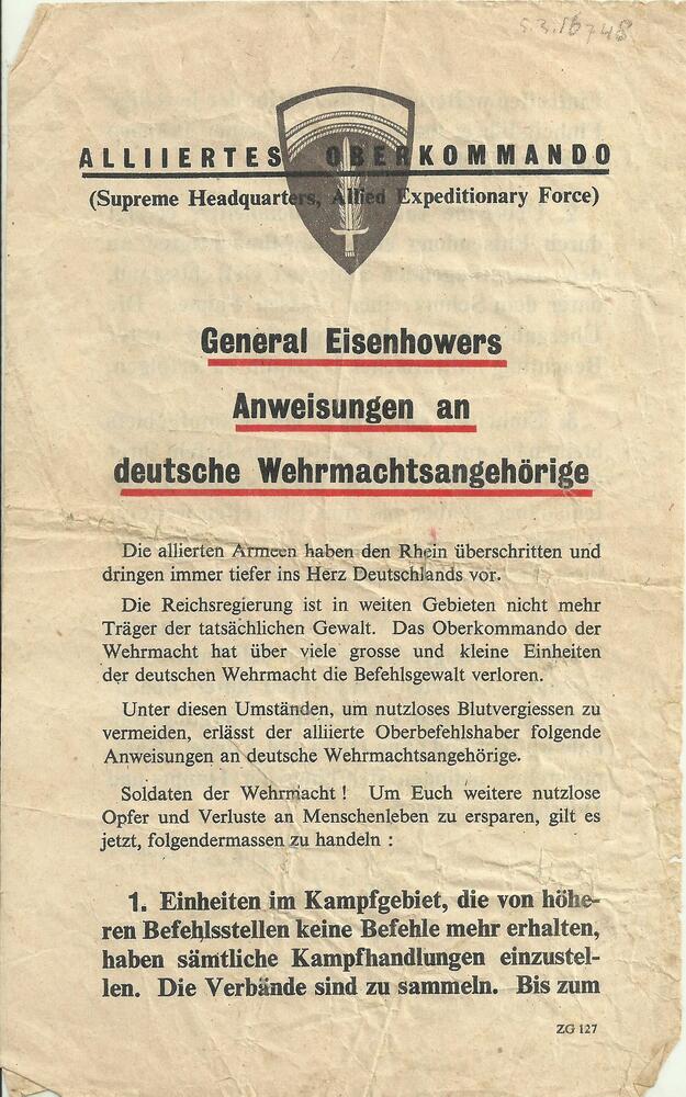 General Eisenhowers Anweisungen an deutsche Wehrmach...