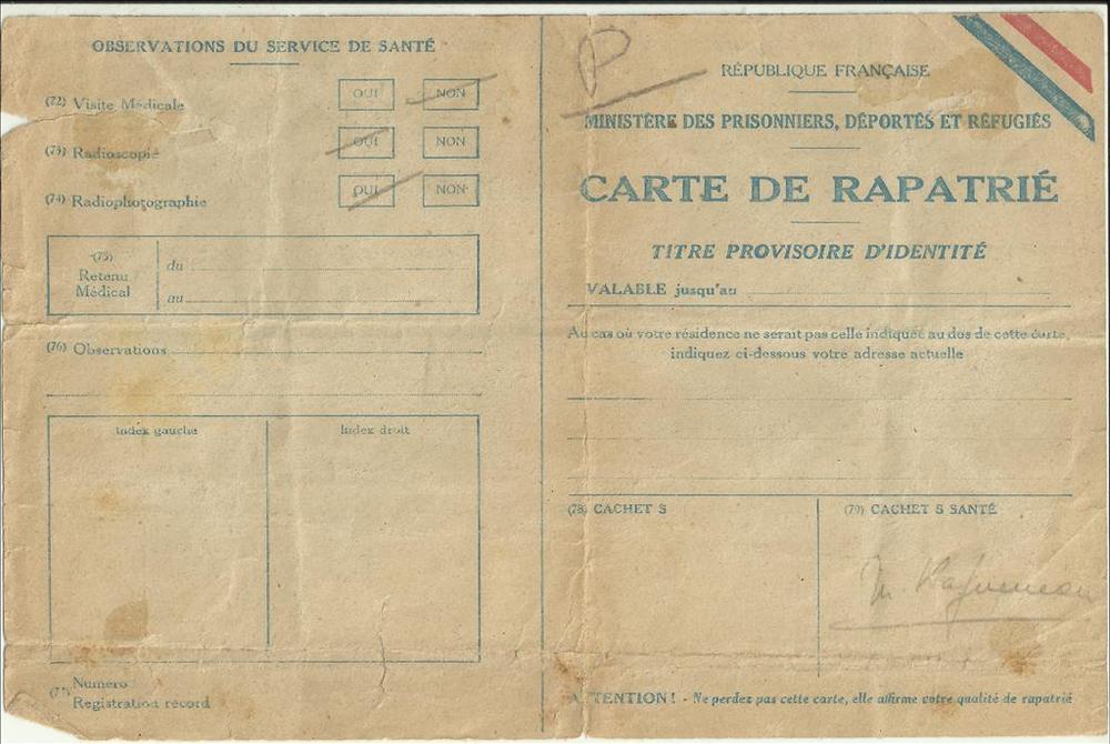 Formulier Carte de Rapatrié