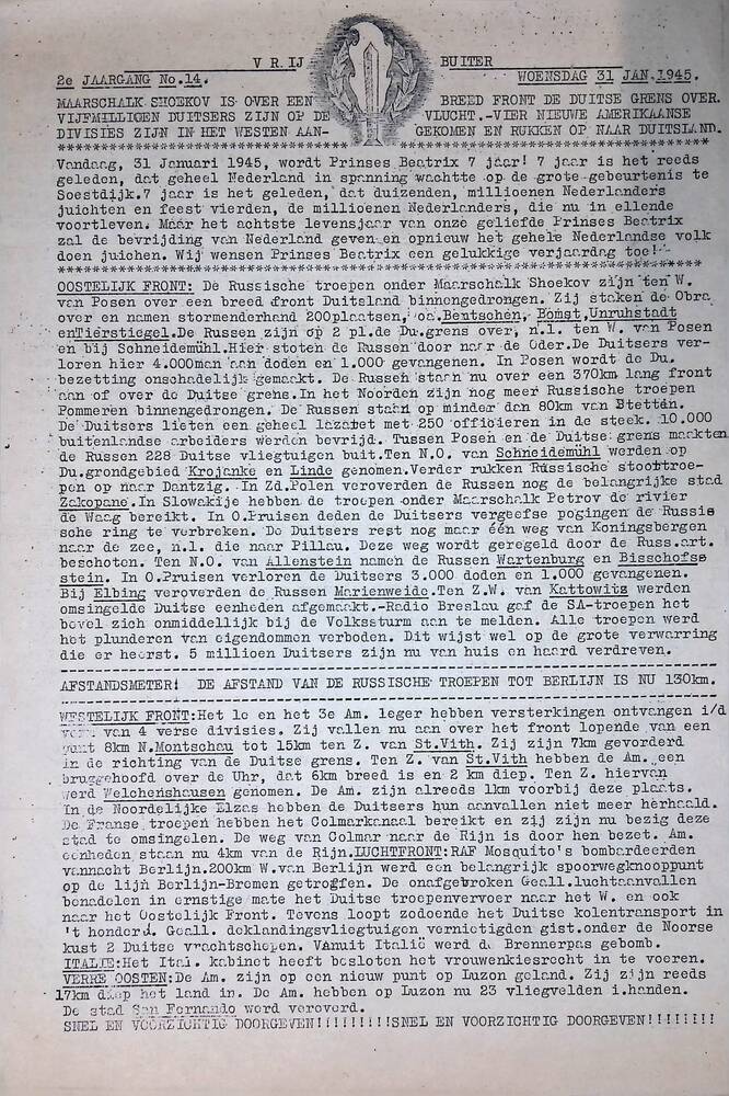 Vrijbuiter, woensdag 31 januari 1945