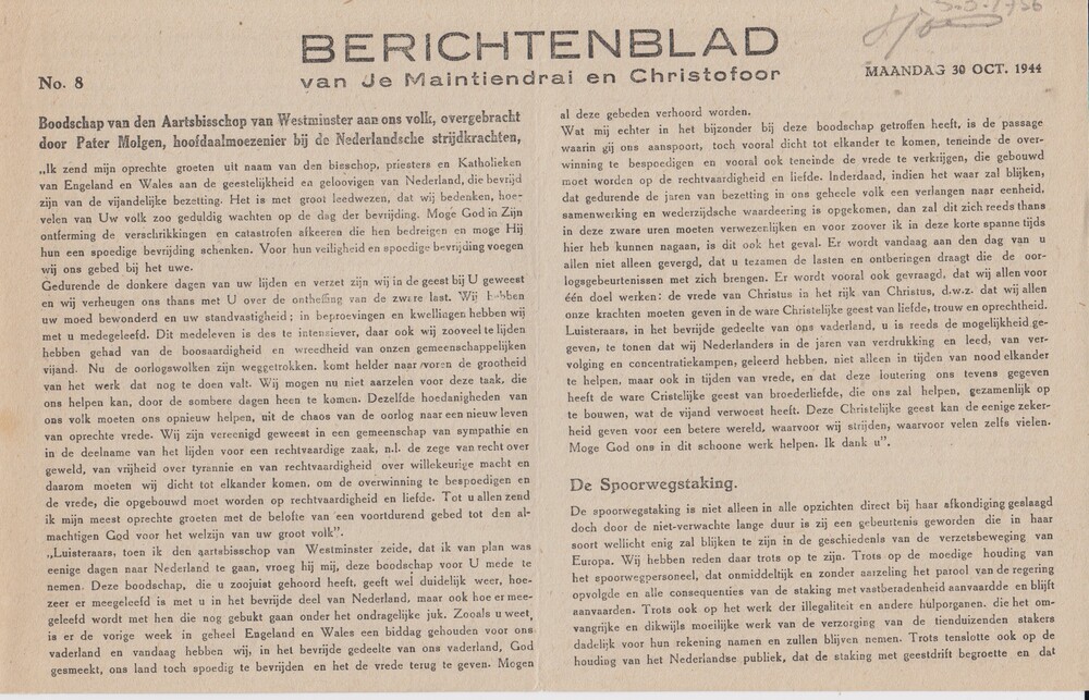 Berichtenblad van Je Maintiendrai en Christofoor. Ma...